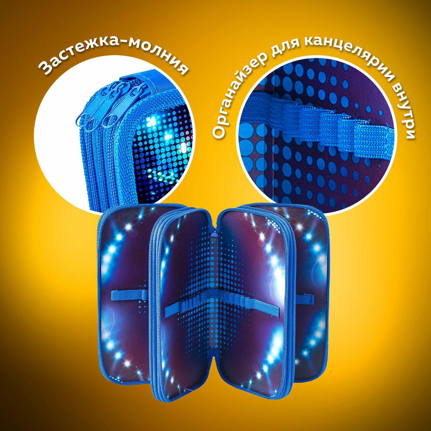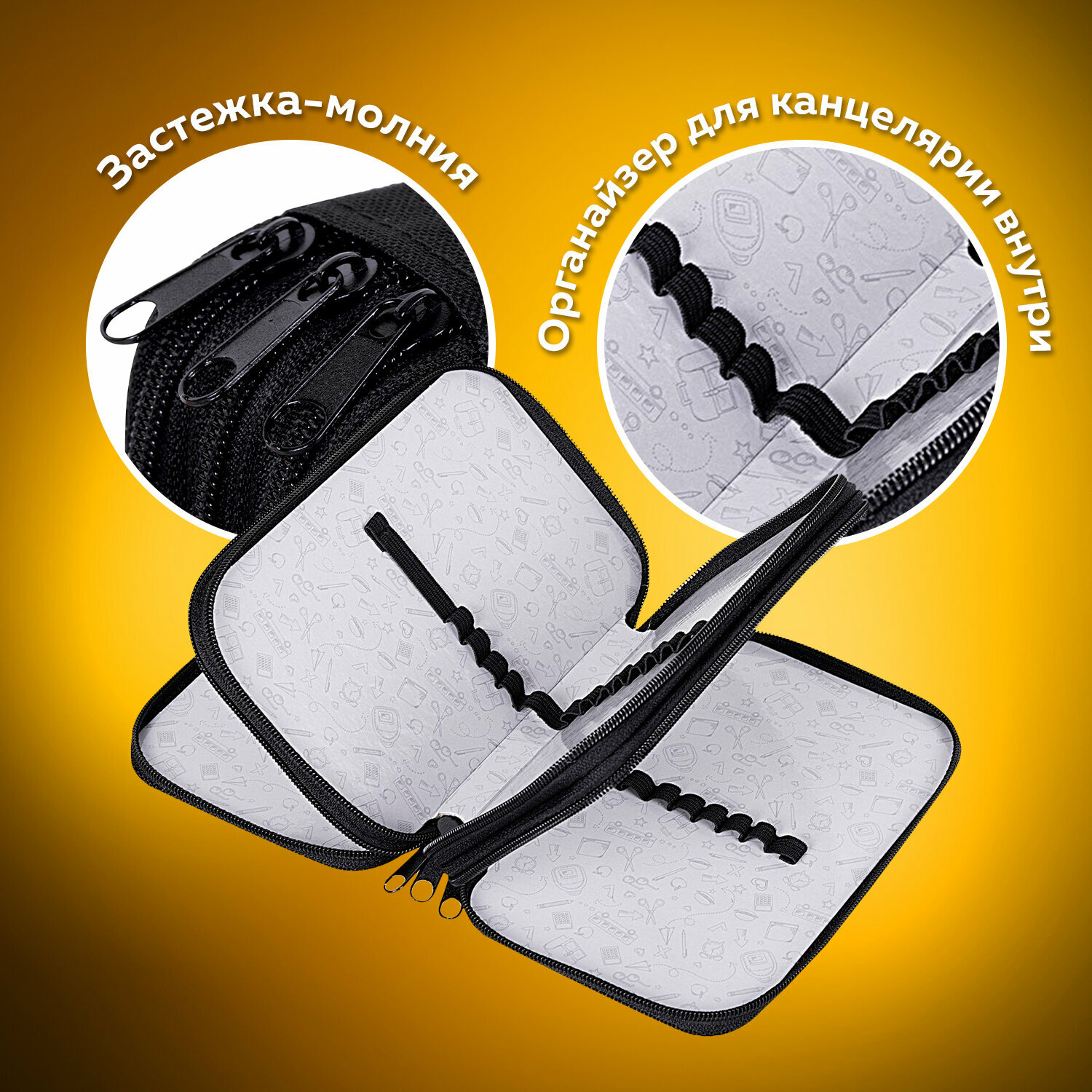 Пенал пифагор, 3 отделения, ламинированный картон, 19х11 см, "Stadium", 228110 интересное: