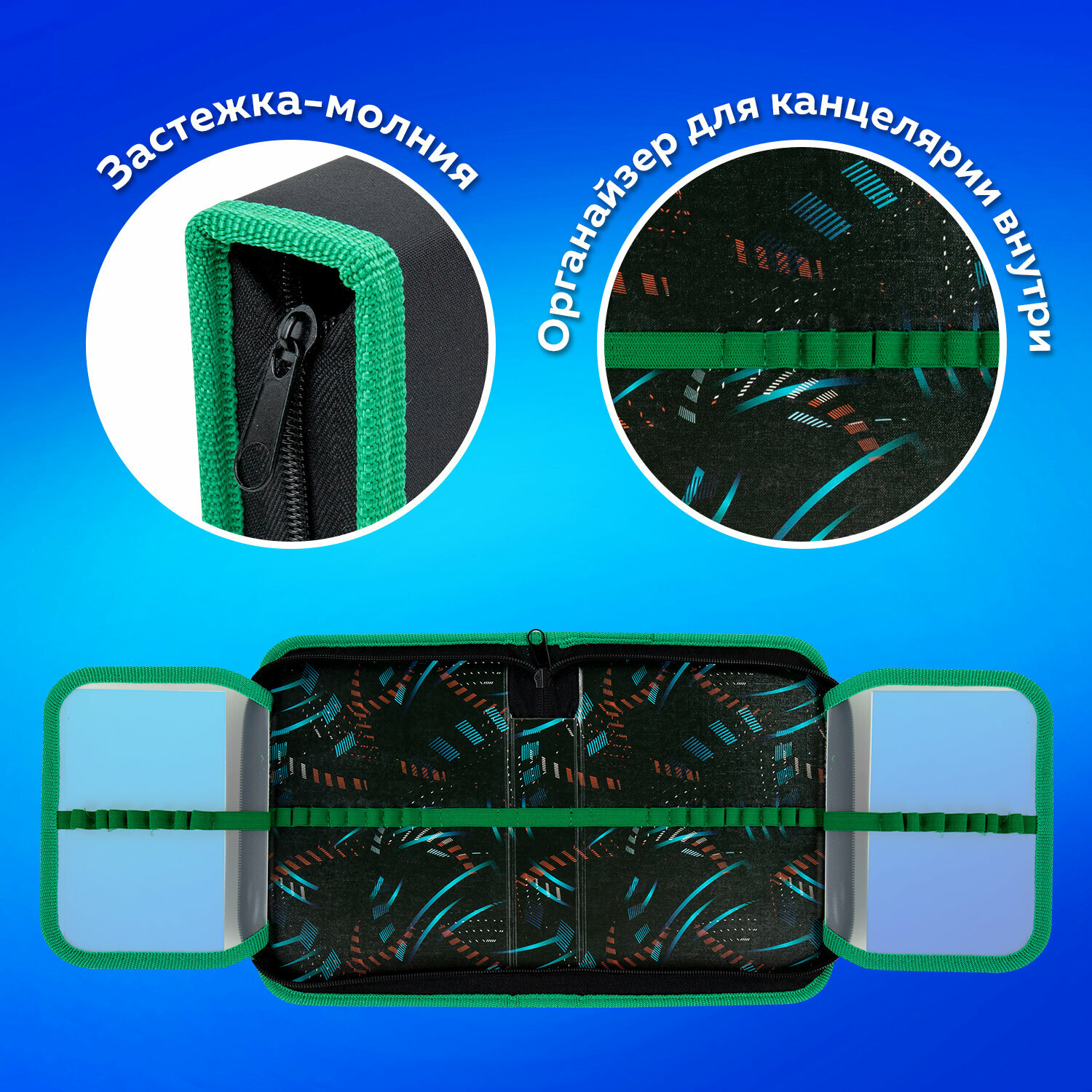 Пенал школьный для мальчиков для карандашей и ручек с 1 отделением, канцелярия для школы, 2 откидные планки, полиэстер, 20х14, Пифагор Boxing, 272289