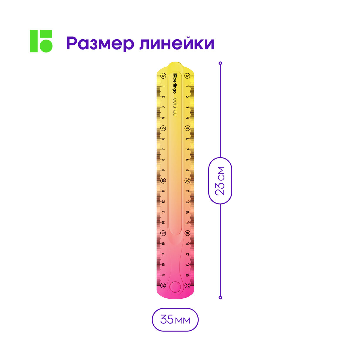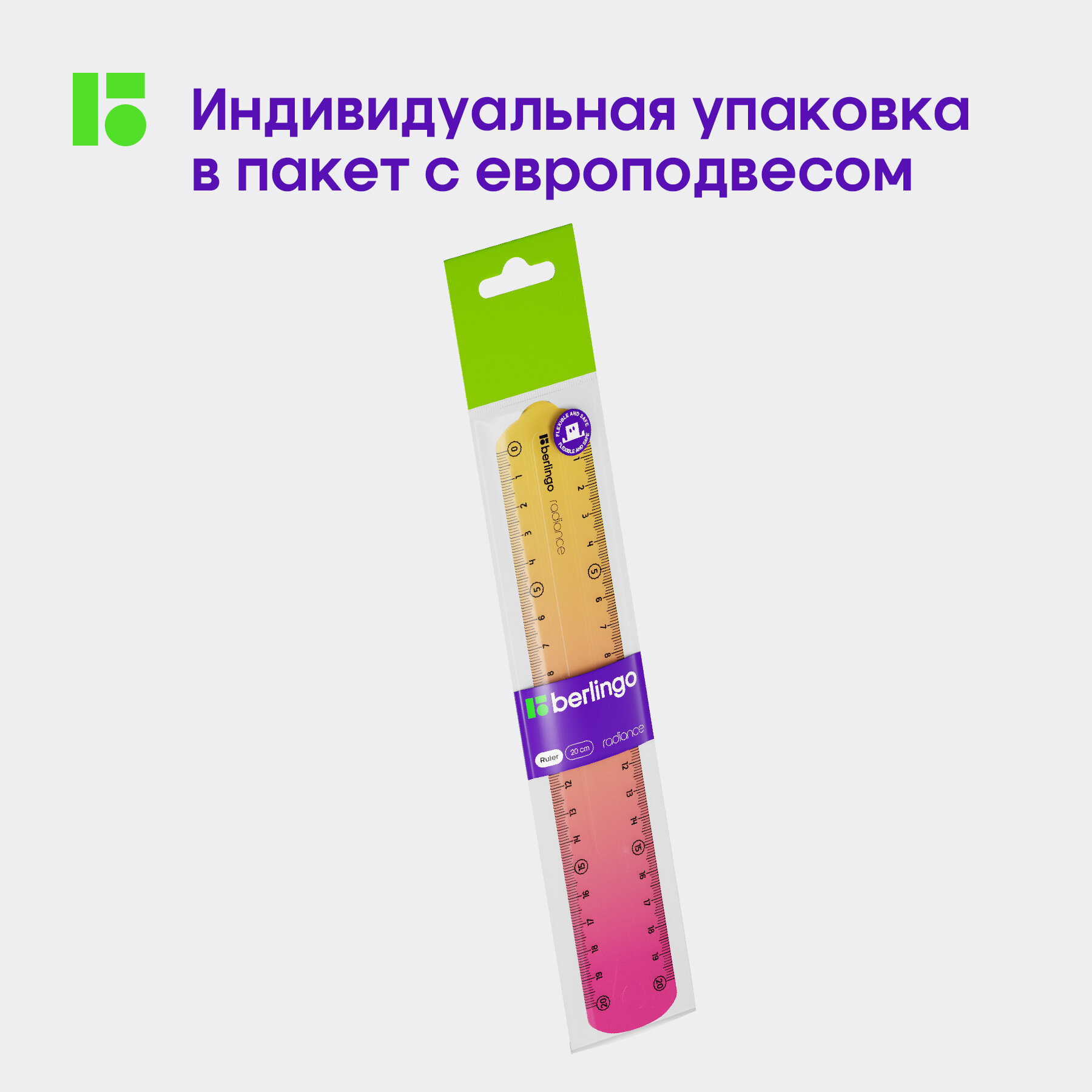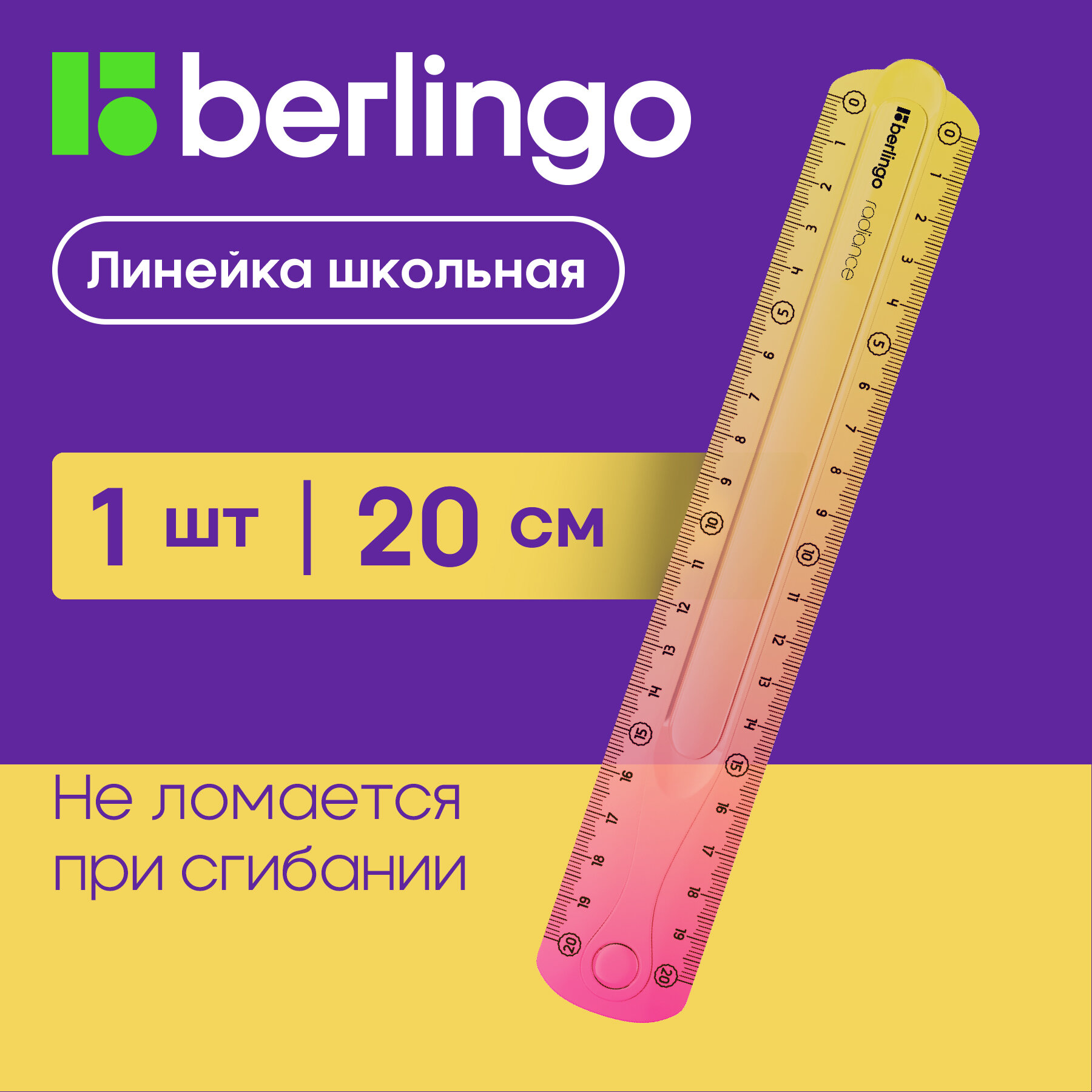 Линейка 20см Berlingo "Radiance", пластиковая, гибкая, желтый/розовый градиент интересное: