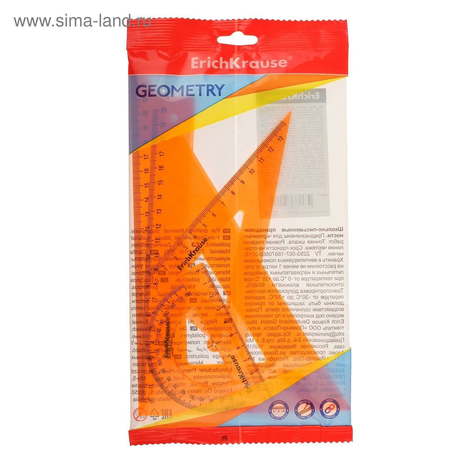 Купить Набор чертежный средний 4 предмета ErichKrause (линейка 20 см, угольник 13 см и 22 см, транспортир) оранжевый