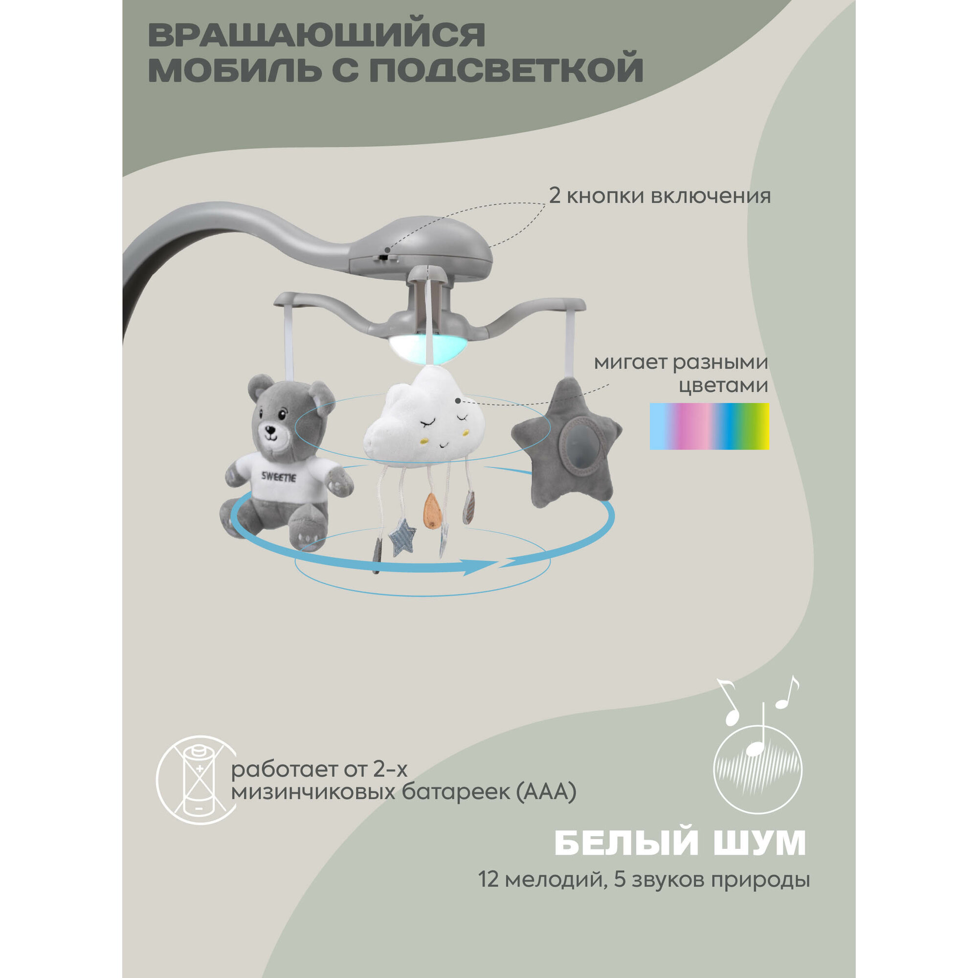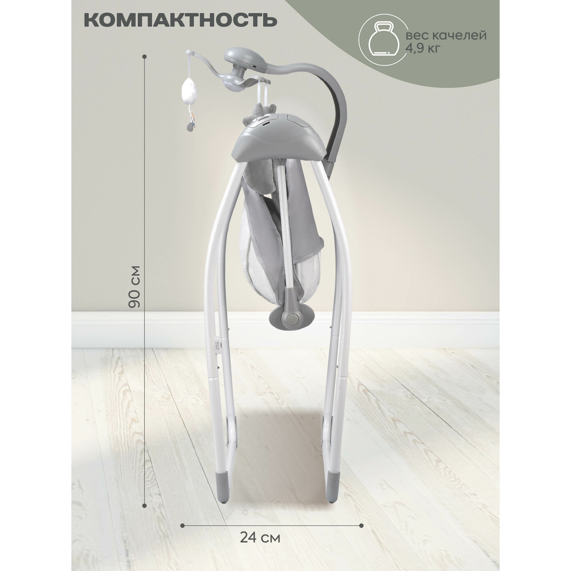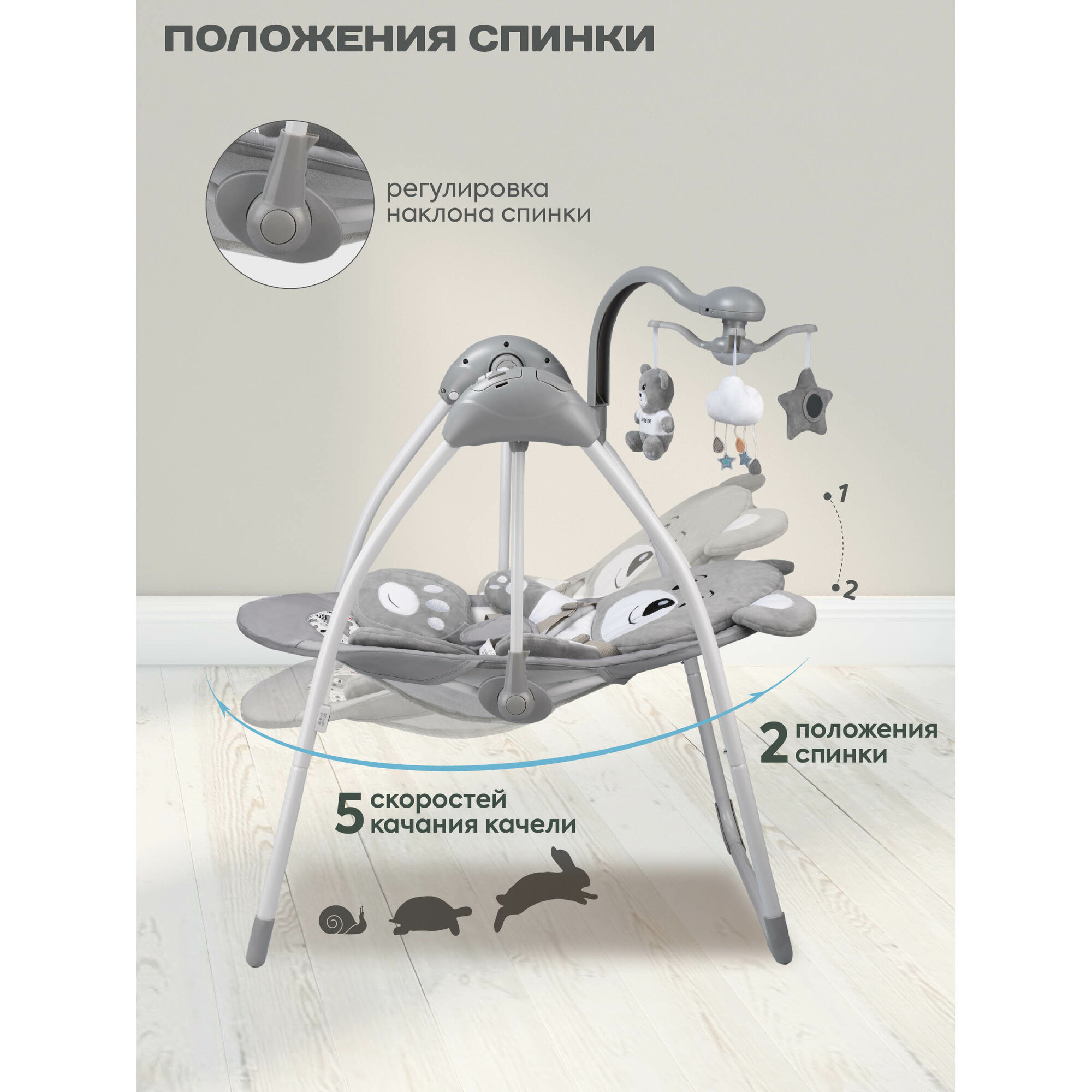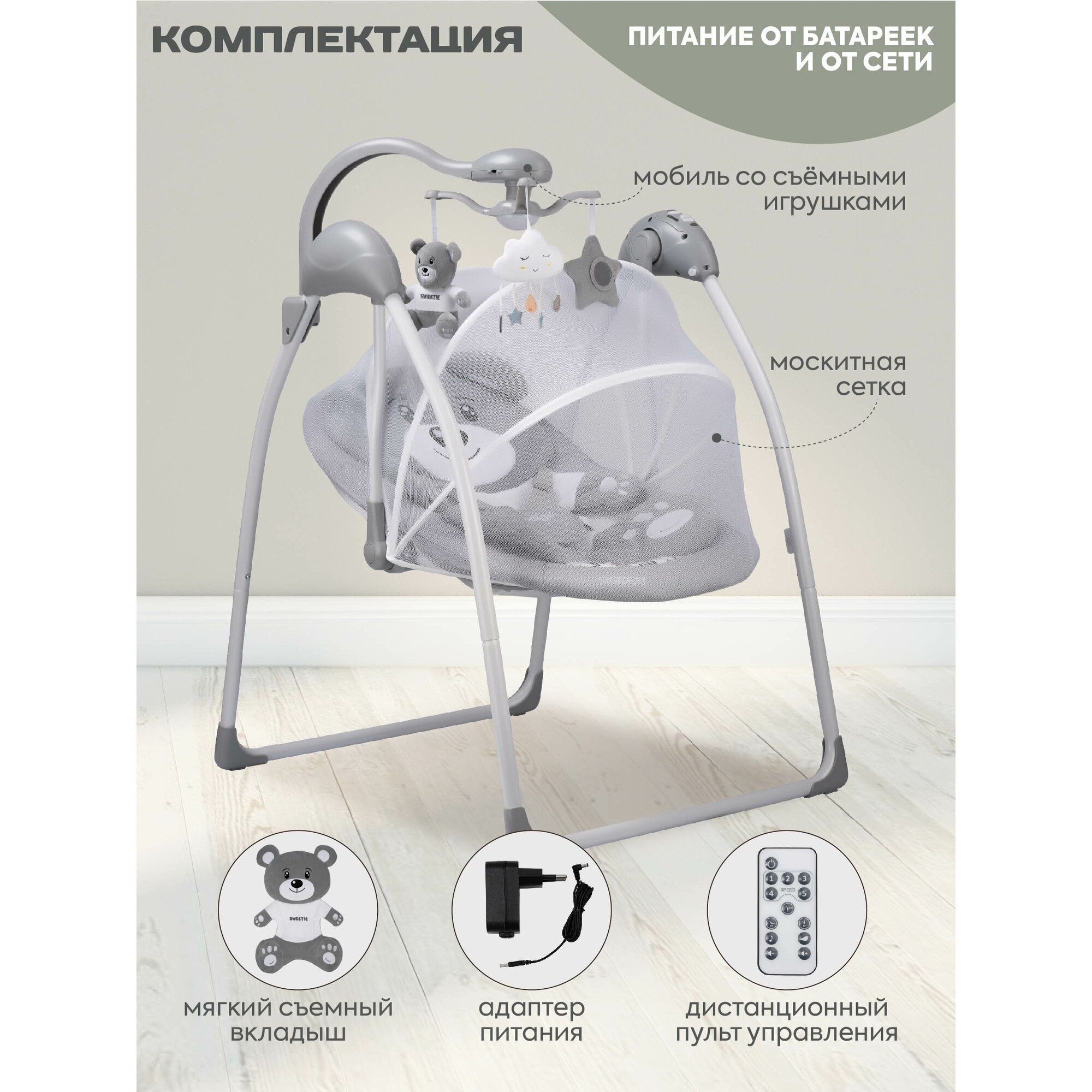 Электрокачели Indigo Teddy с мобилем и пультом, серый интересное:
