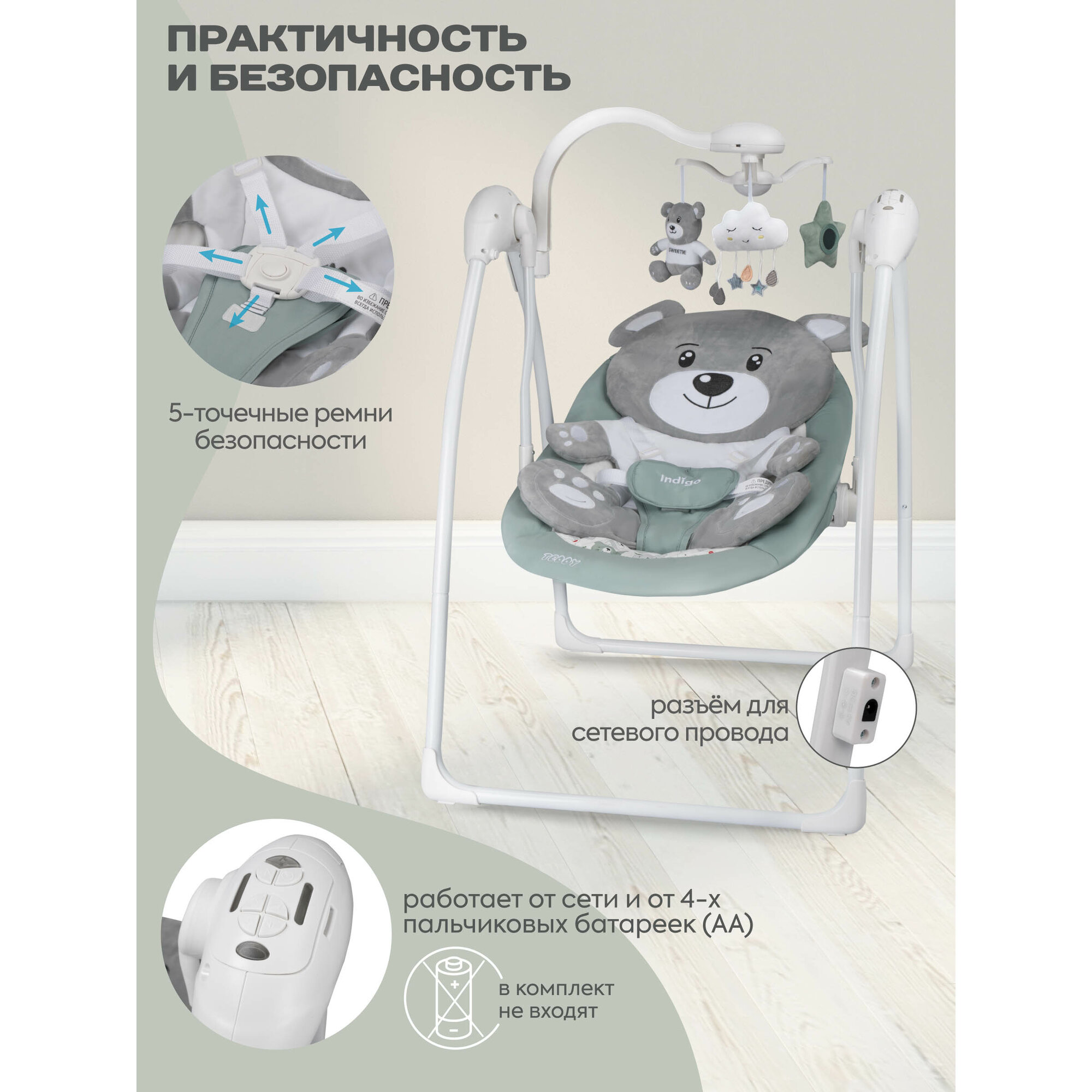 Купить Электрокачели Indigo Teddy с мобилем и пультом, зеленый