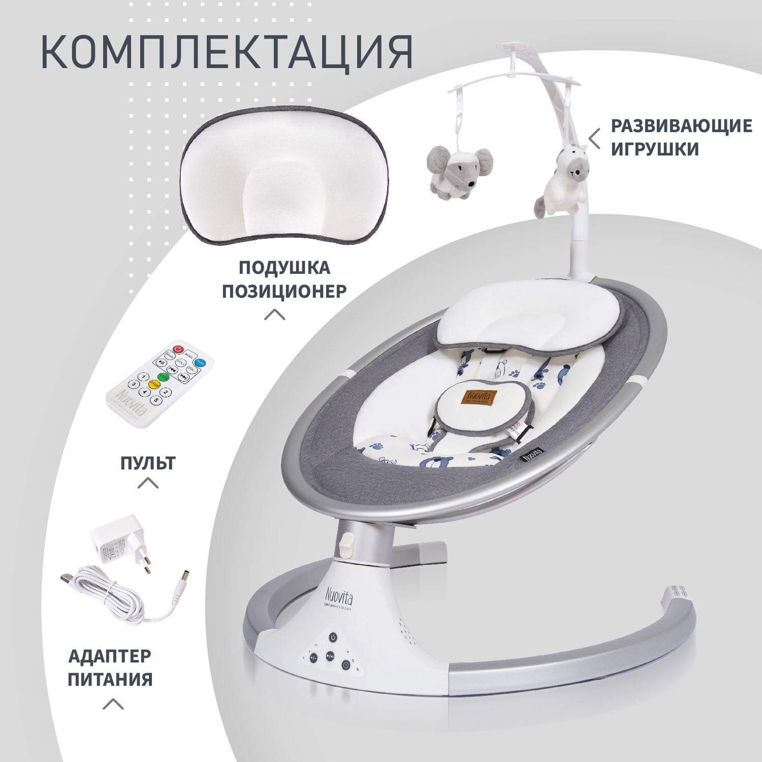 Электрокачели для новорожденных Nuovita Mistero MS1 (Серый, Серебристый) интересное: