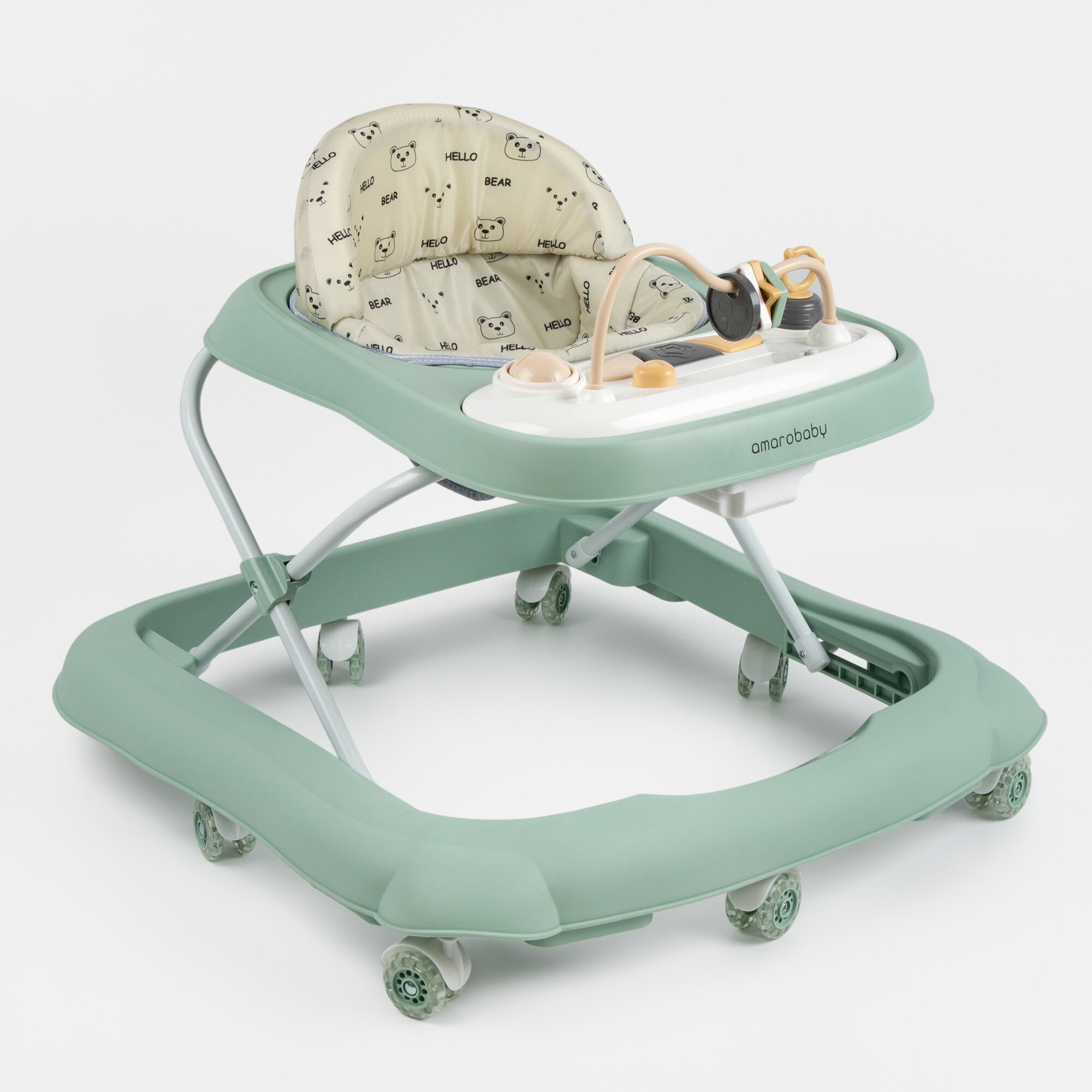 Купить Ходунки детские с электронной игровой панелью Amarobaby, Happy Steps, зелёный