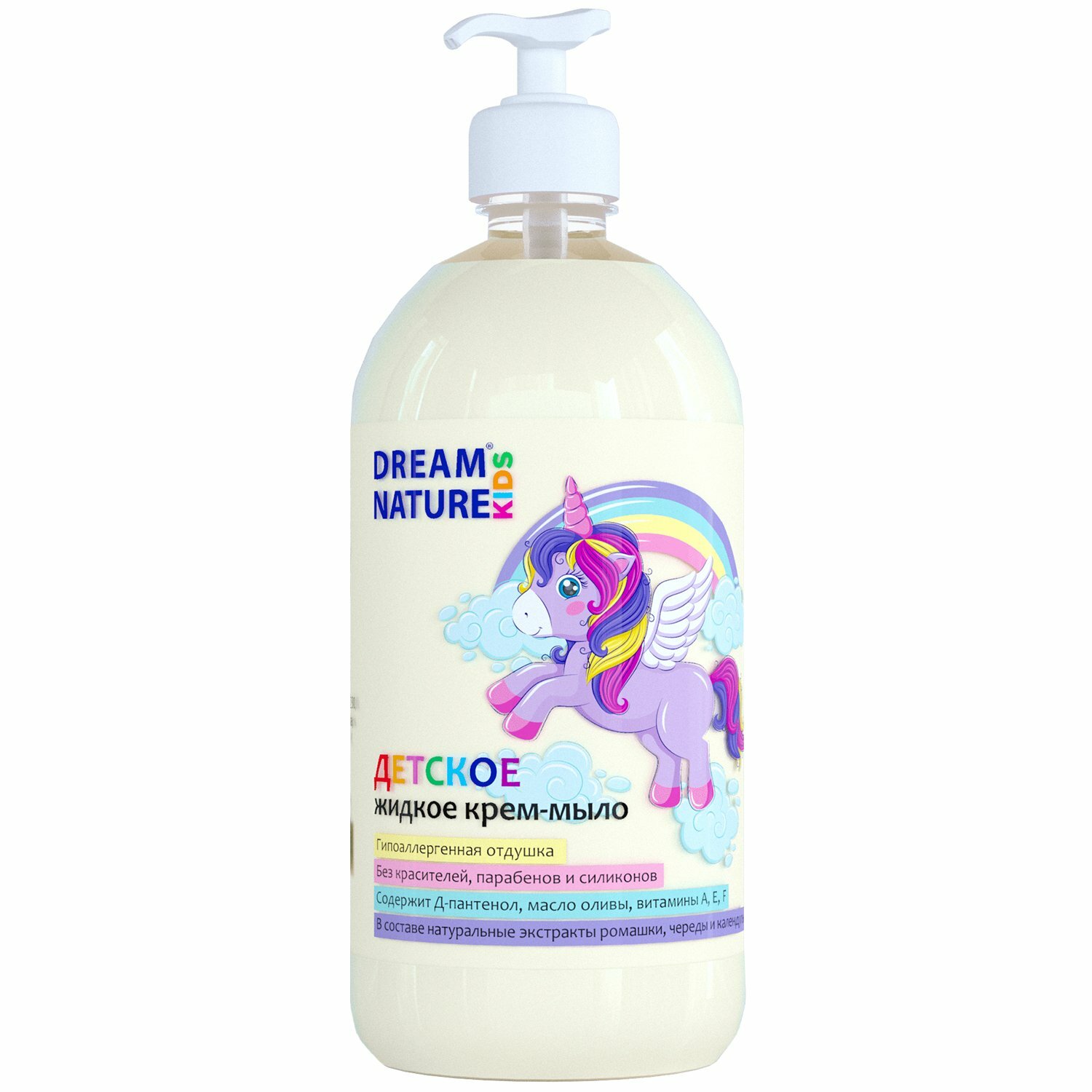 Детское жидкое мыло 0+ DREAM NATURE KIDS 1л, гипоаллергенное мыло для детей и для новорожденных, для мытья рук и умывания с натуральными экстрактами ромашки, череды и календулы