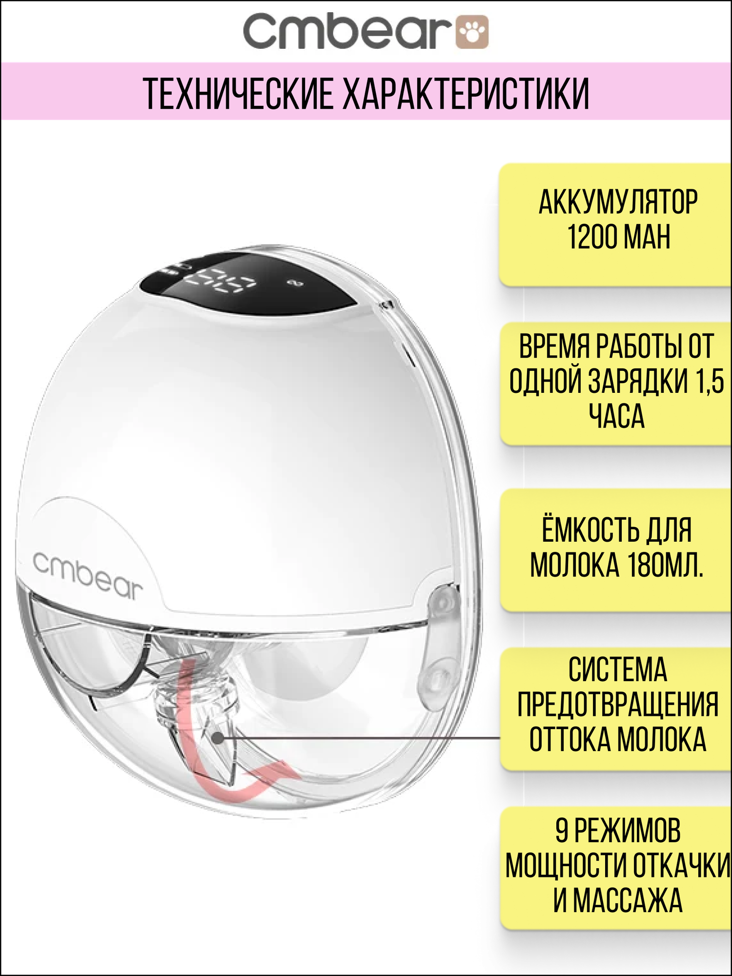Молокоотсос электрический портативный переносной беспроводной "Cmbear" интересное: