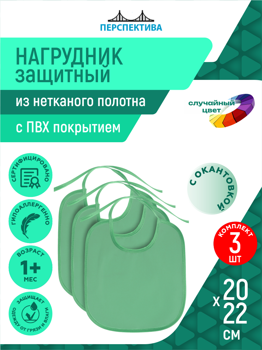 Купить Нагрудник Перспектива из нетканого полотна с ПВХ покрытием 20 х 22 см разных цветов х 3 шт.