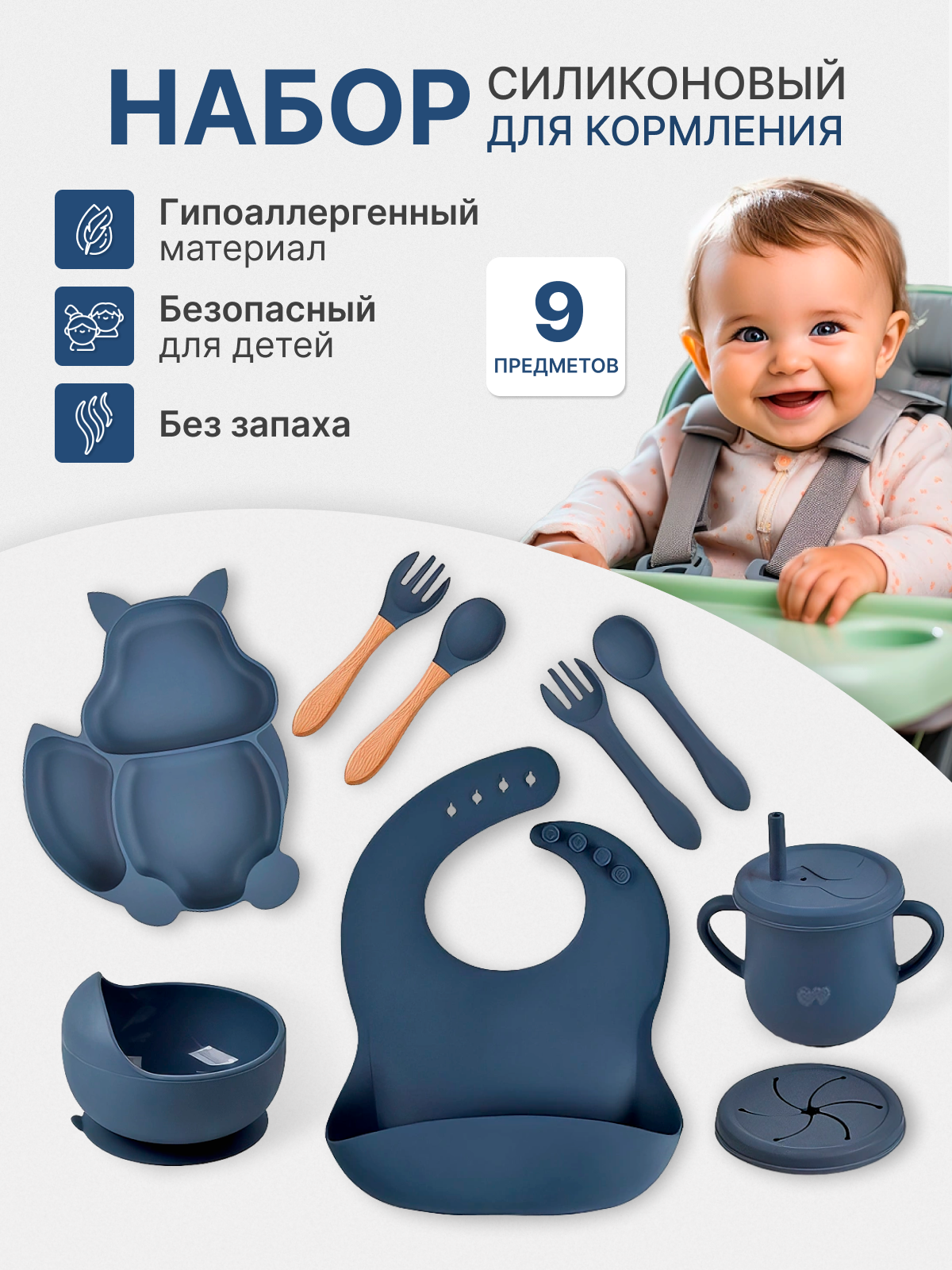 Купить Детский набор силиконовой посуды для кормления малыша из 9 предметов