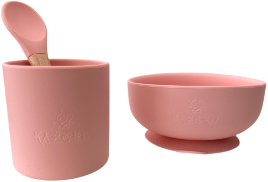 Купить Набор детской силиконовой посуды для детей KAZOKU Розовый Зефир