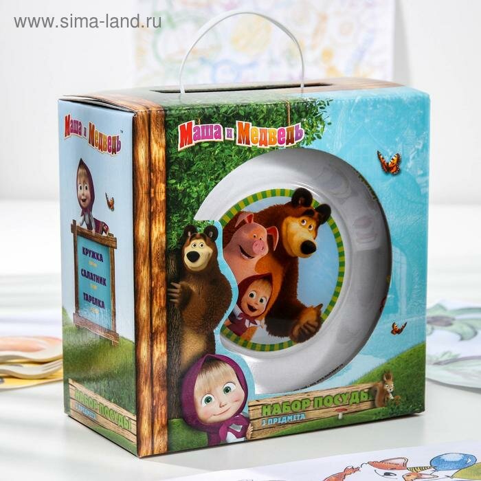 Набор посуды детский «Маша и Медведь. Добрый день», 3 предмета: кружка 250 мл, салатник d=12,8 см, тарелка d=19,5 см, 4481526 интересное: