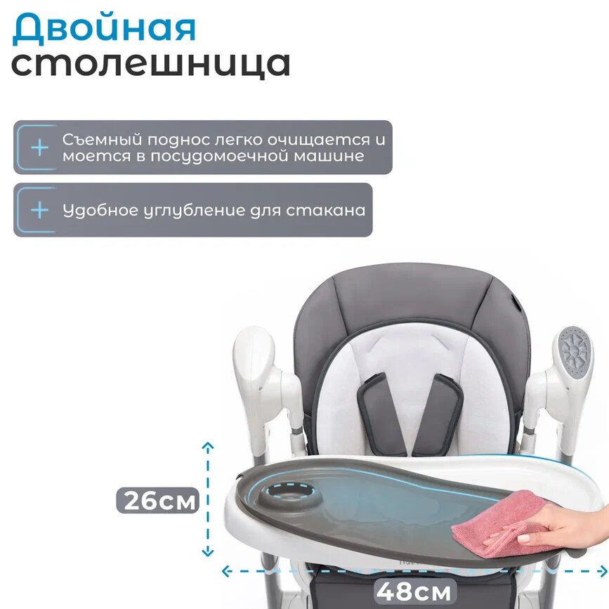 | Регулировка | высоты стульчика / наклона спинки / положения подножки / положения столика |