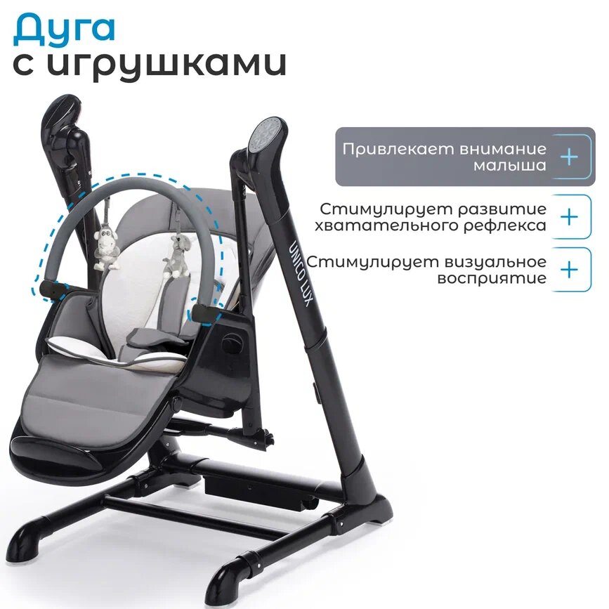 СохранитьСтульчик для кормления детский с электронным устройством качения Nuovita Unico lux Nero (Grigio, Nero/Серый, Черный) интересное: