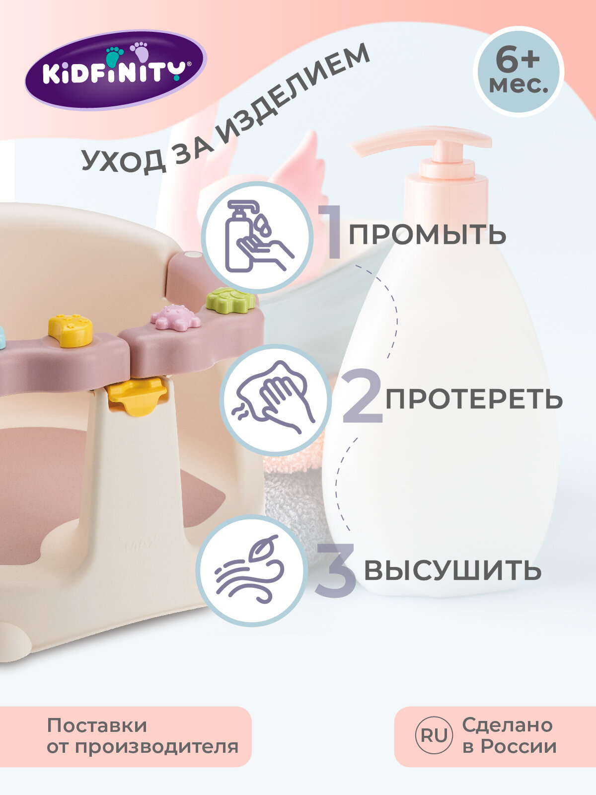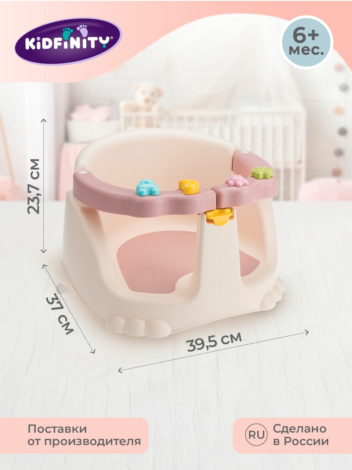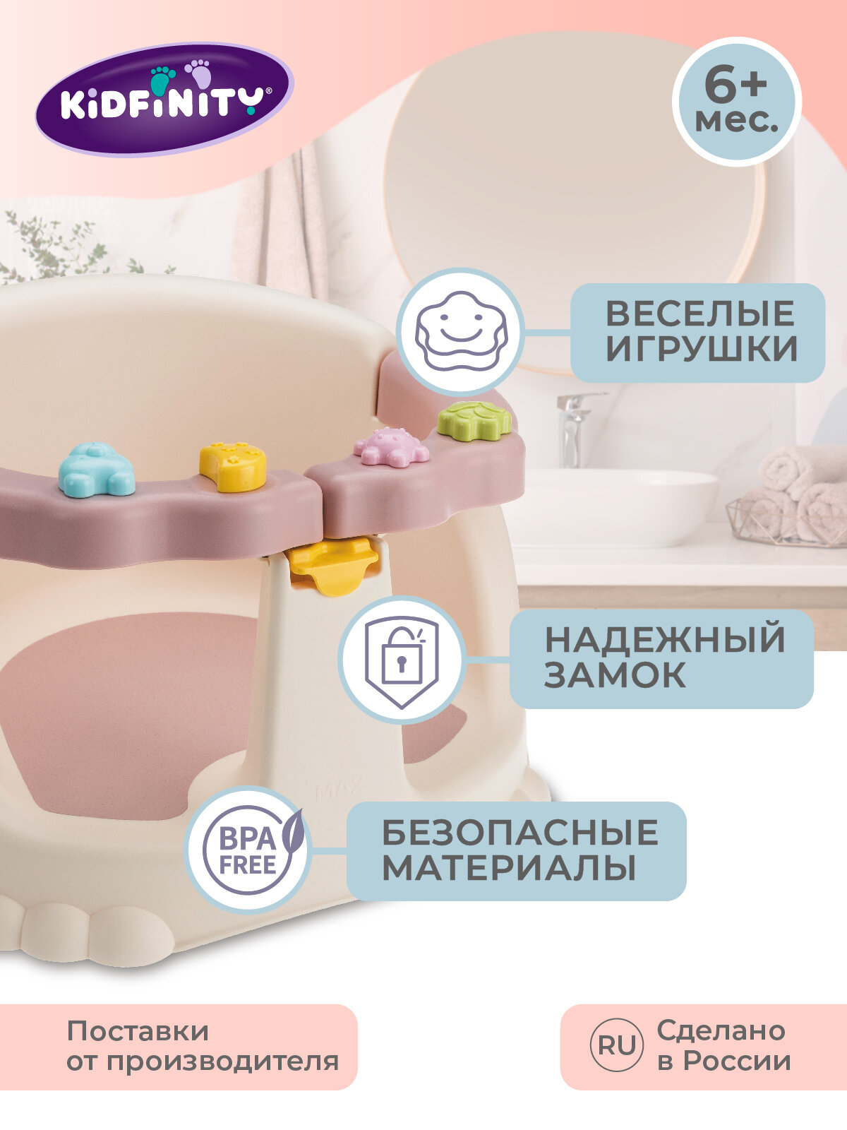 Сиденье для купания детское Kidfinity, с нескользящим покрытием и игрушками, розовое