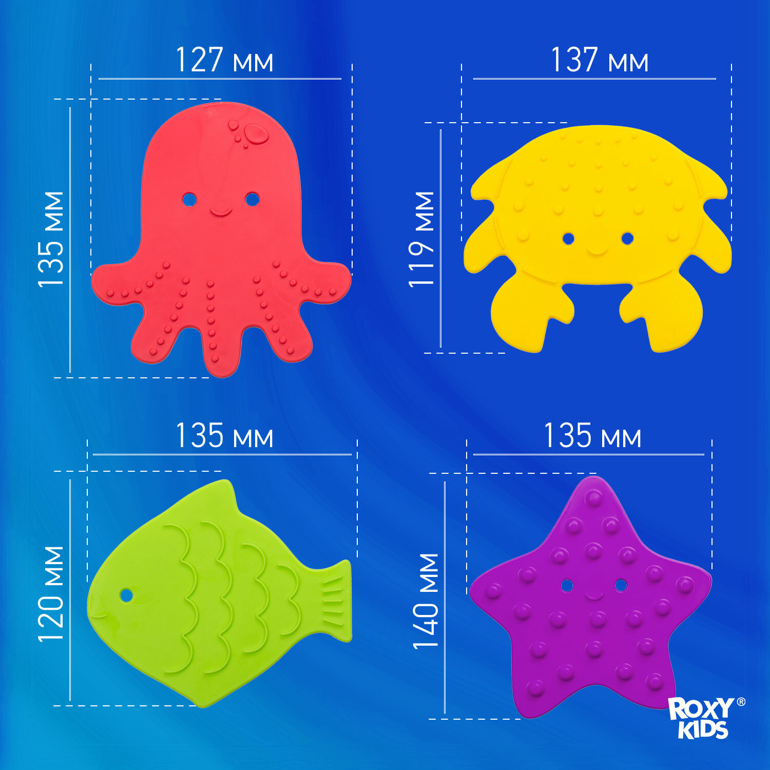 Мини-коврики ROXY-KIDS для ванны 8 шт, в ассорт.