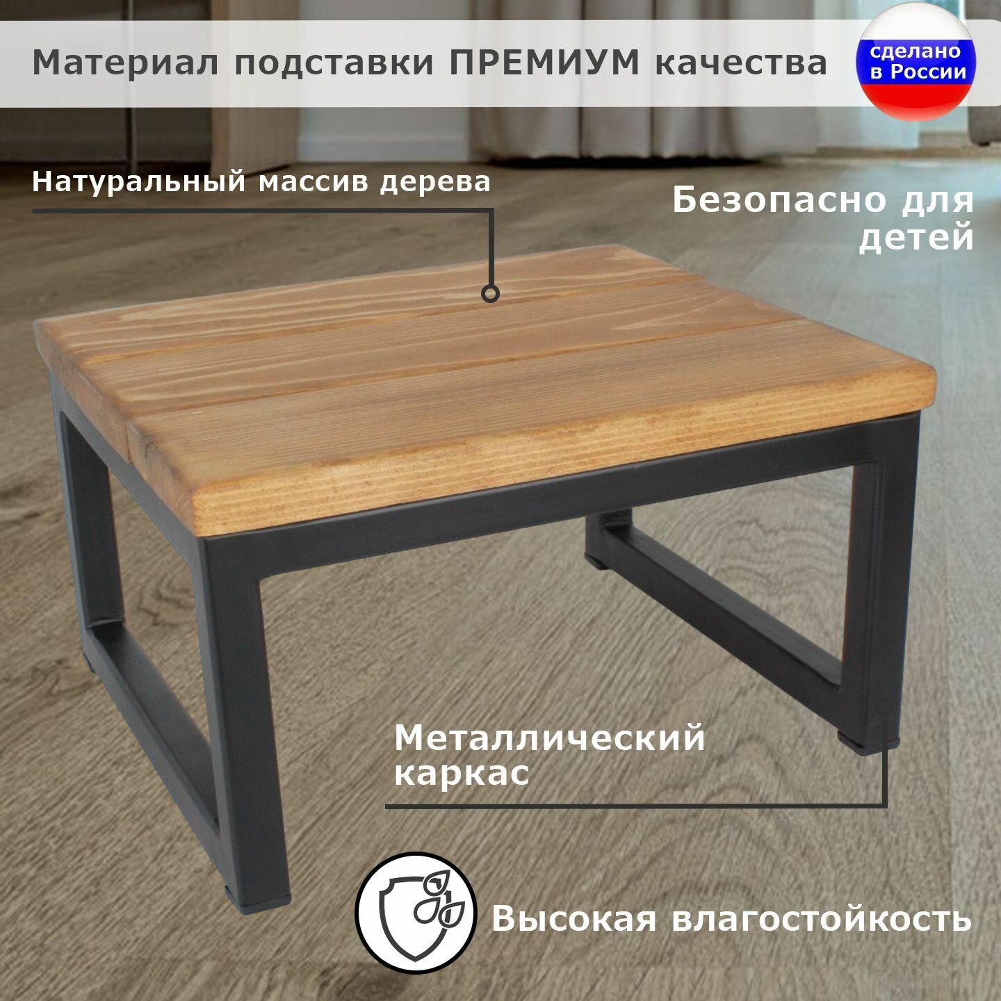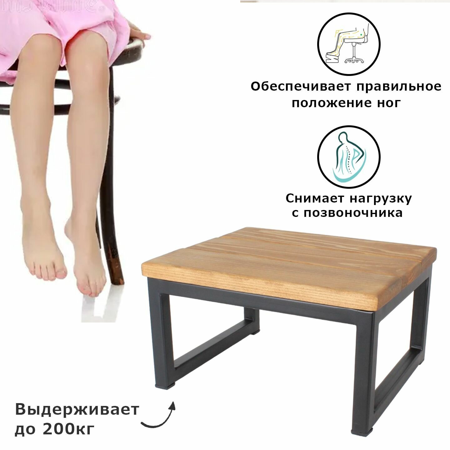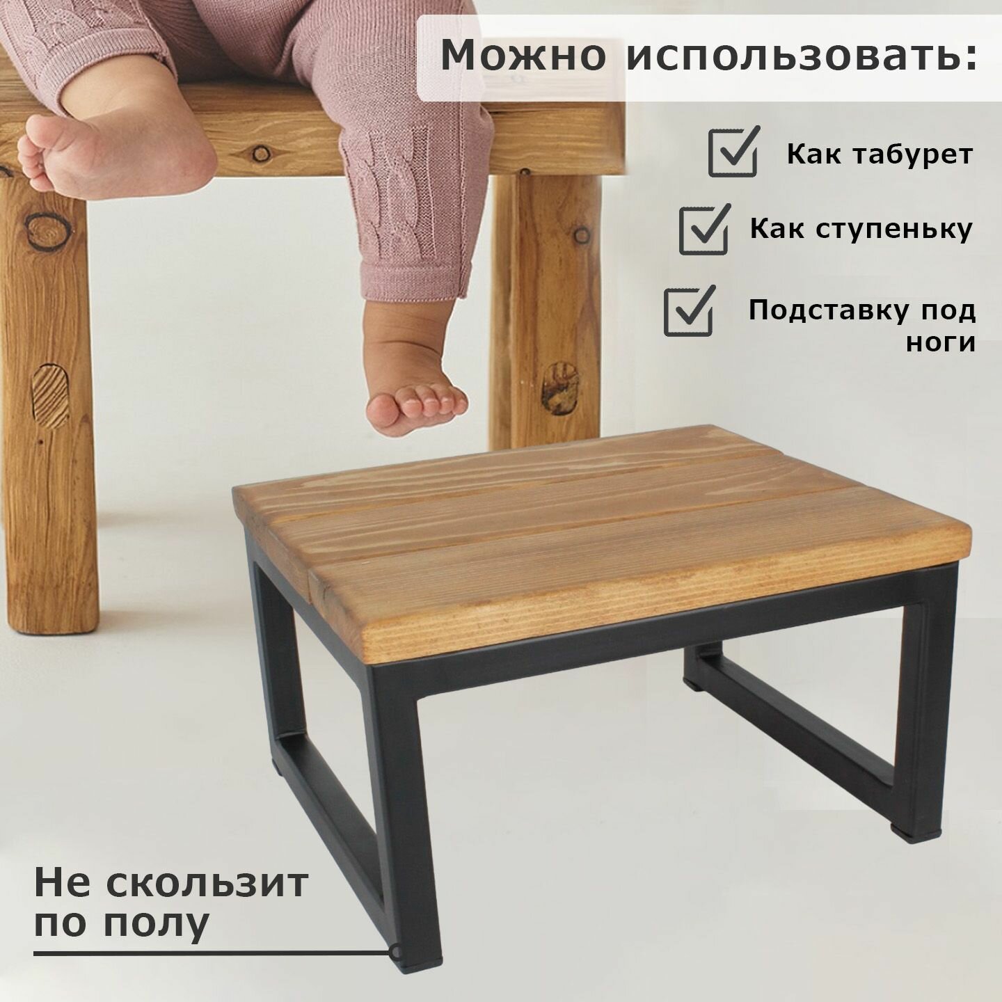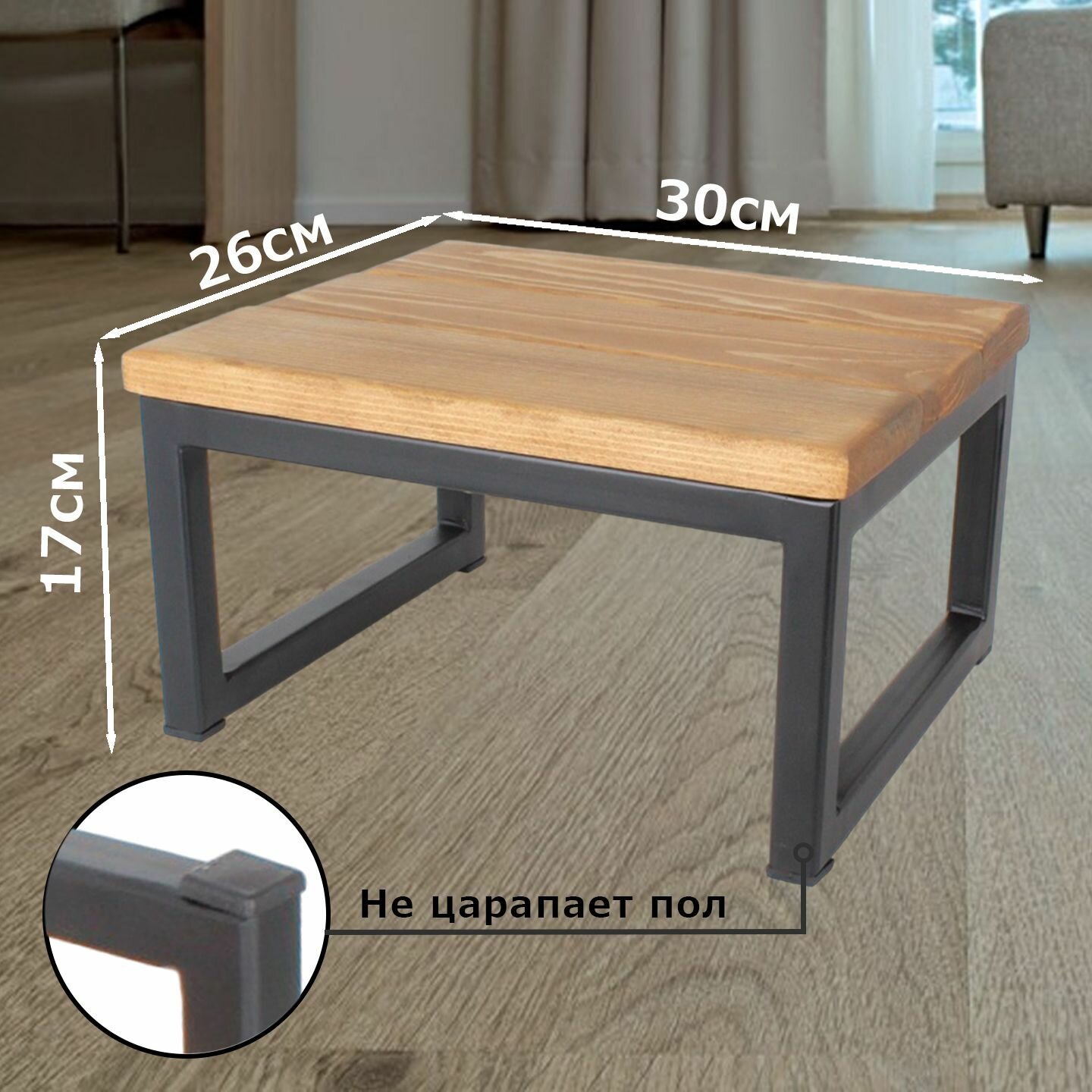 Подставка- скамейка под ноги / табурет, металлический каркас, сиденье массив дерева. Размер 300х260х170 мм интересное: