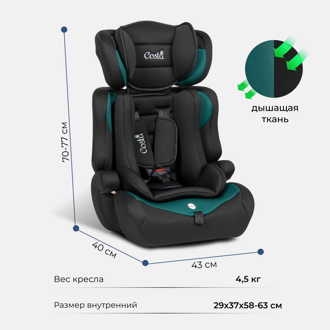 Детское автокресло 9-36 кг Costa HC-01, черно-зеленый интересное: