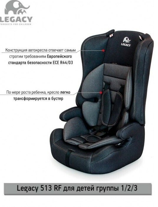 Автокресло Lullaby 513 RF джинс серый группа 1/2/3 ( 9-36 кг) интересное: