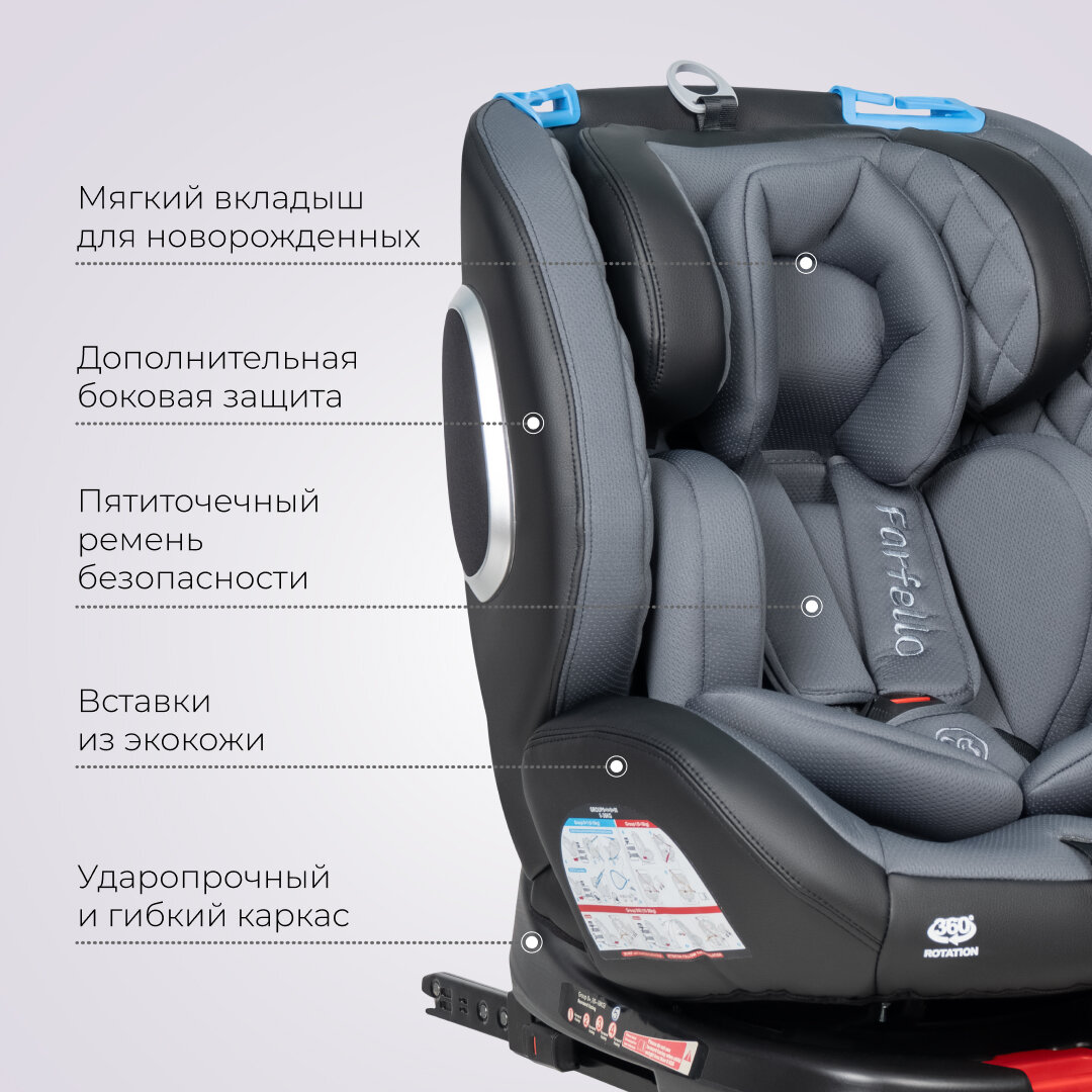 Купить Автокресло детское ISOFIX Farfello YB102A группа 0+/1/2/3 (0-36 кг), экокожа темно-серый
