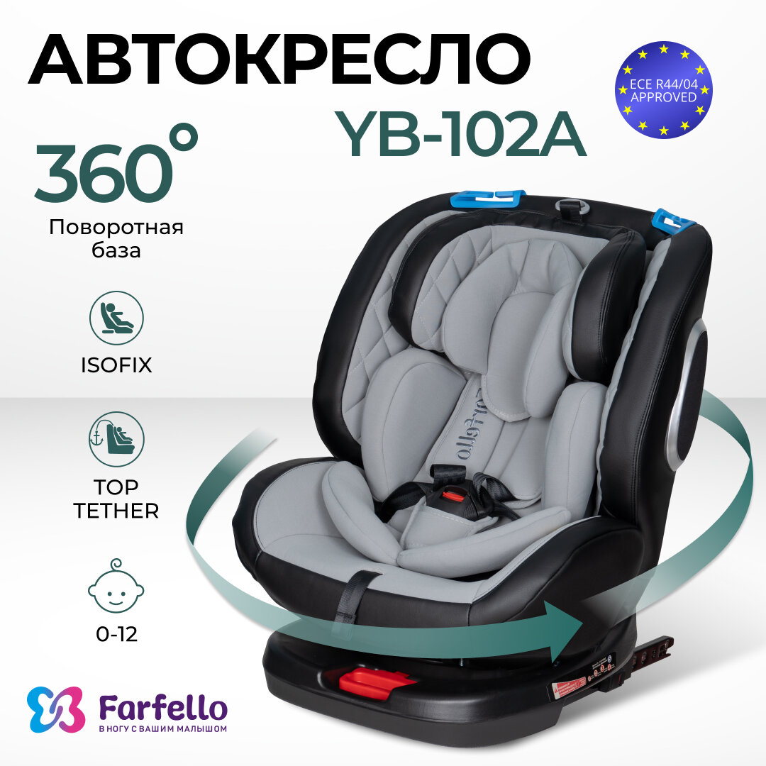 Купить Автокресло детское ISOFIX Farfello YB102A группа 0+/1/2/3 (0-36 кг), серый
