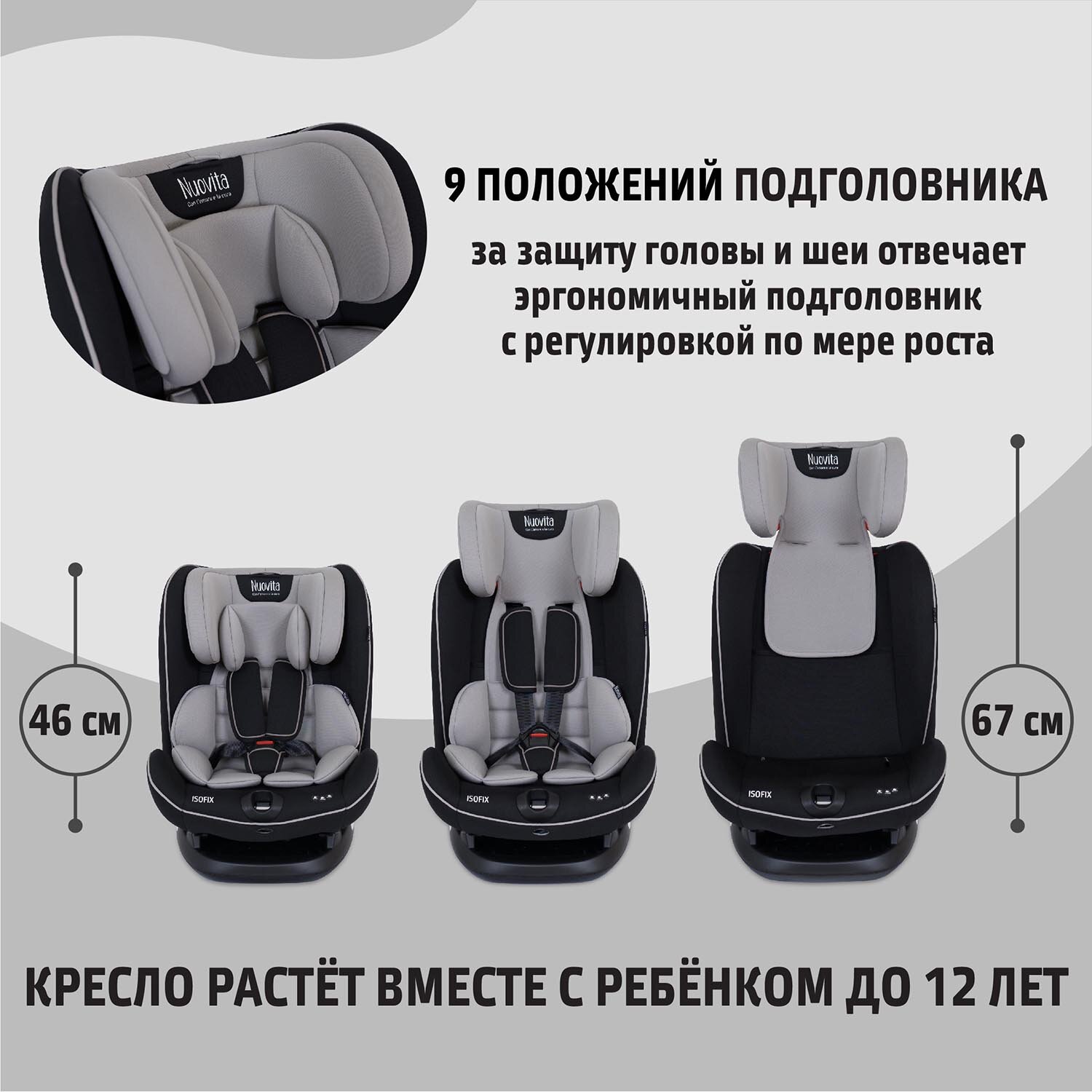 Автокресло детское с креплением Isofix Nuovita Maczione N123i-2/ Группа 1,2,3, вес 9-36 кг, от 9 мес – 12 лет (Grigio/Серый) интересное: