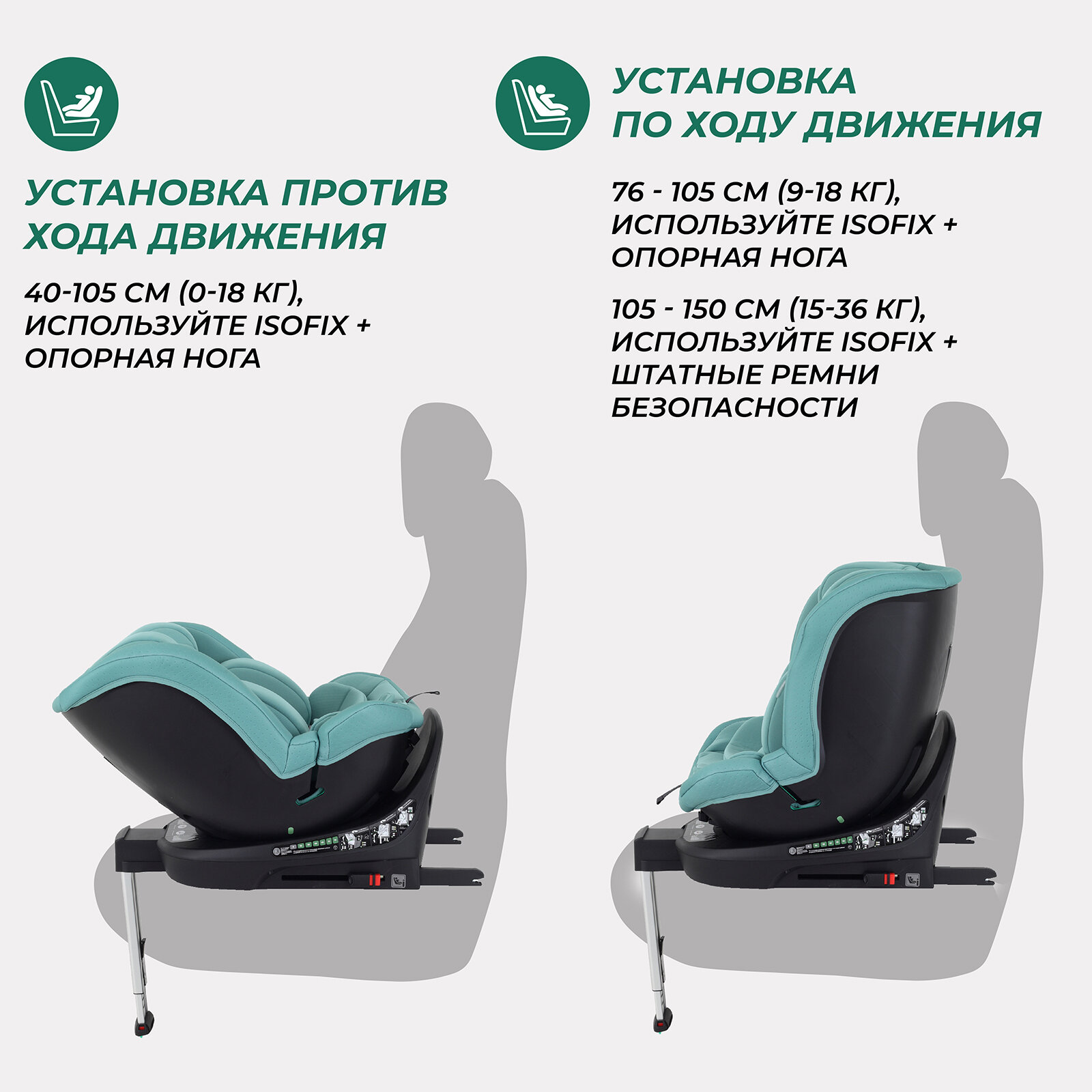 | Установка | спиной или лицом вперед |