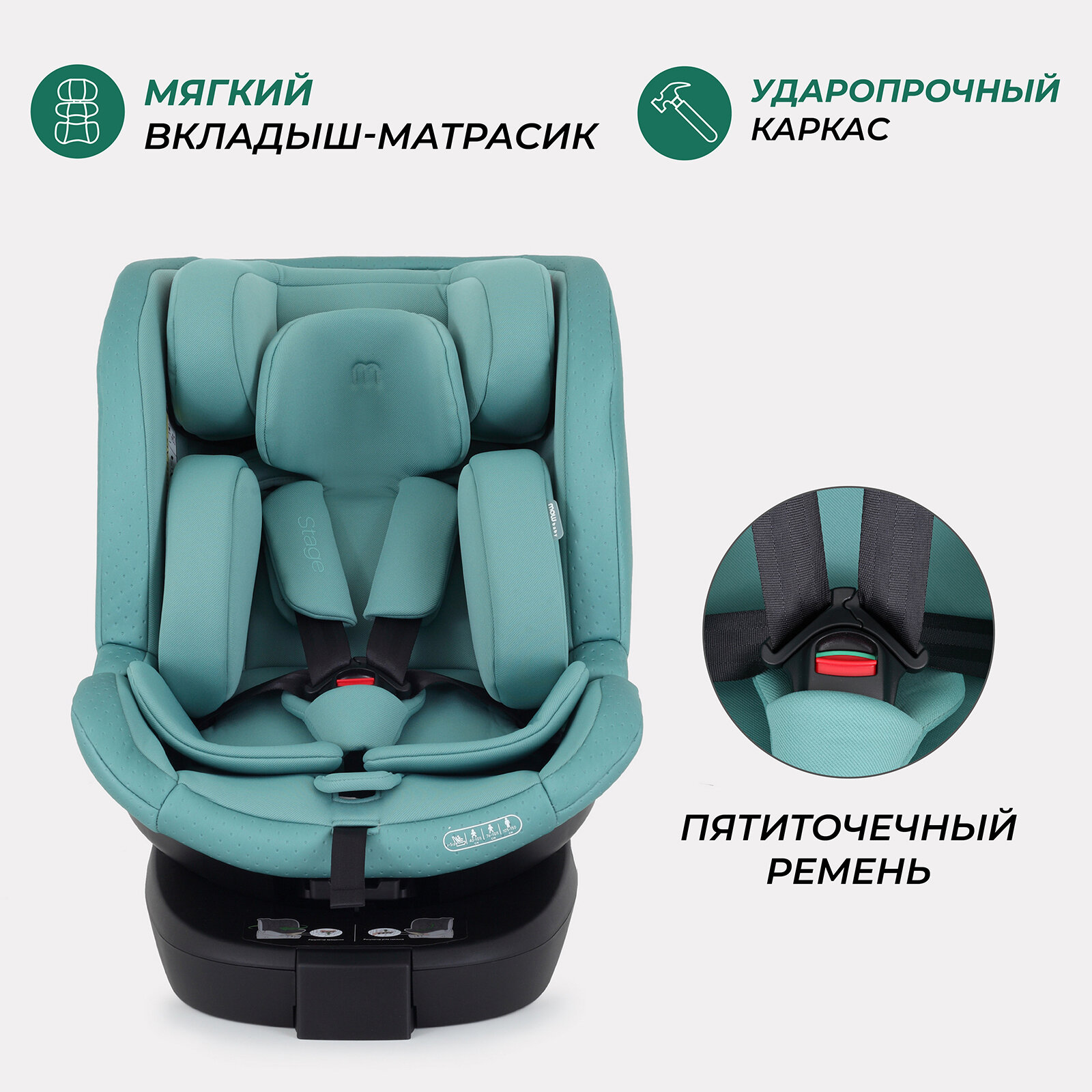 Автокресло MOWBaby AY959 Pro "STAGE" isofix Green (40-150см) интересное: