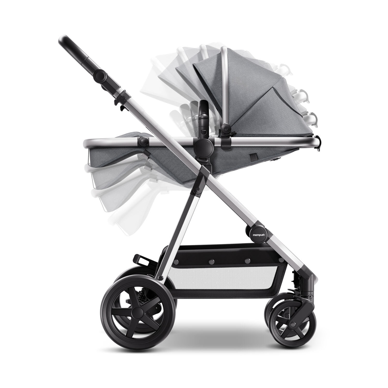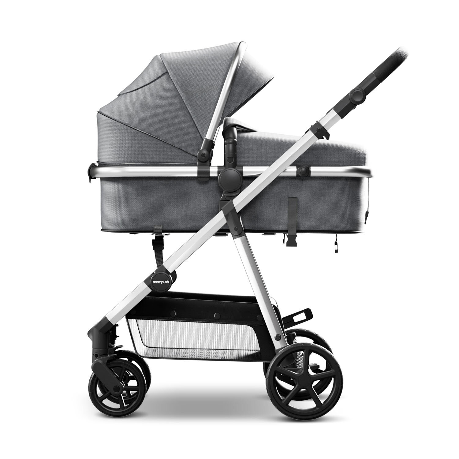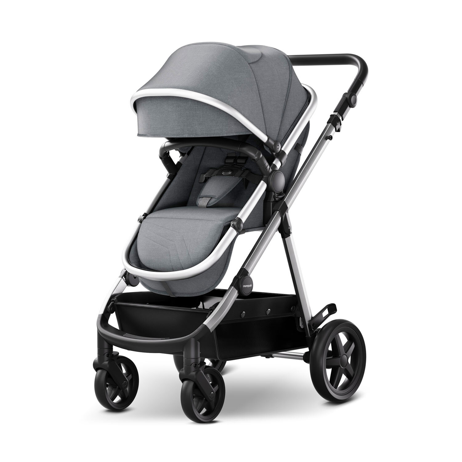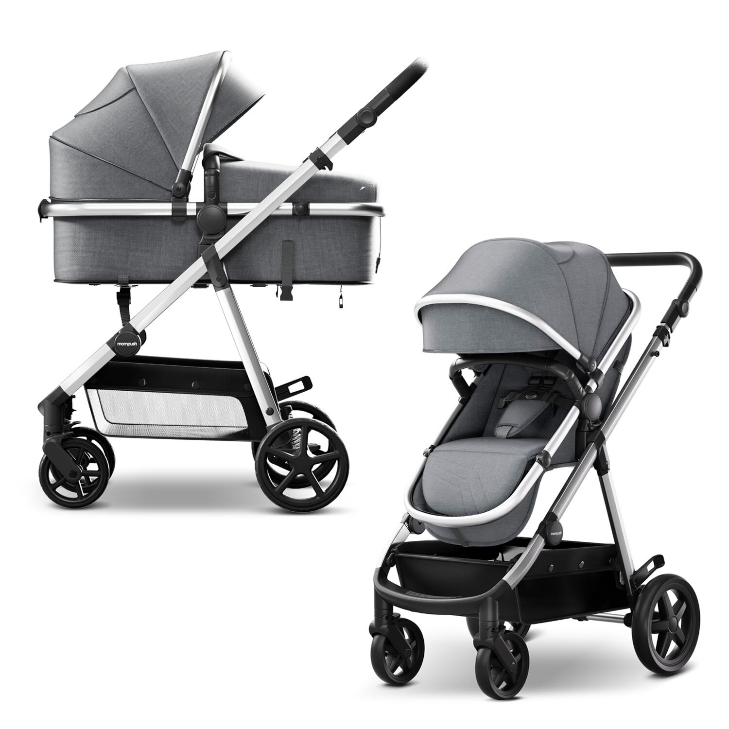 Коляска для новорожденных прогулочная 2 в 1 трансформер Mompush Meteor серый, до 22 кг, дождевик в комплекте