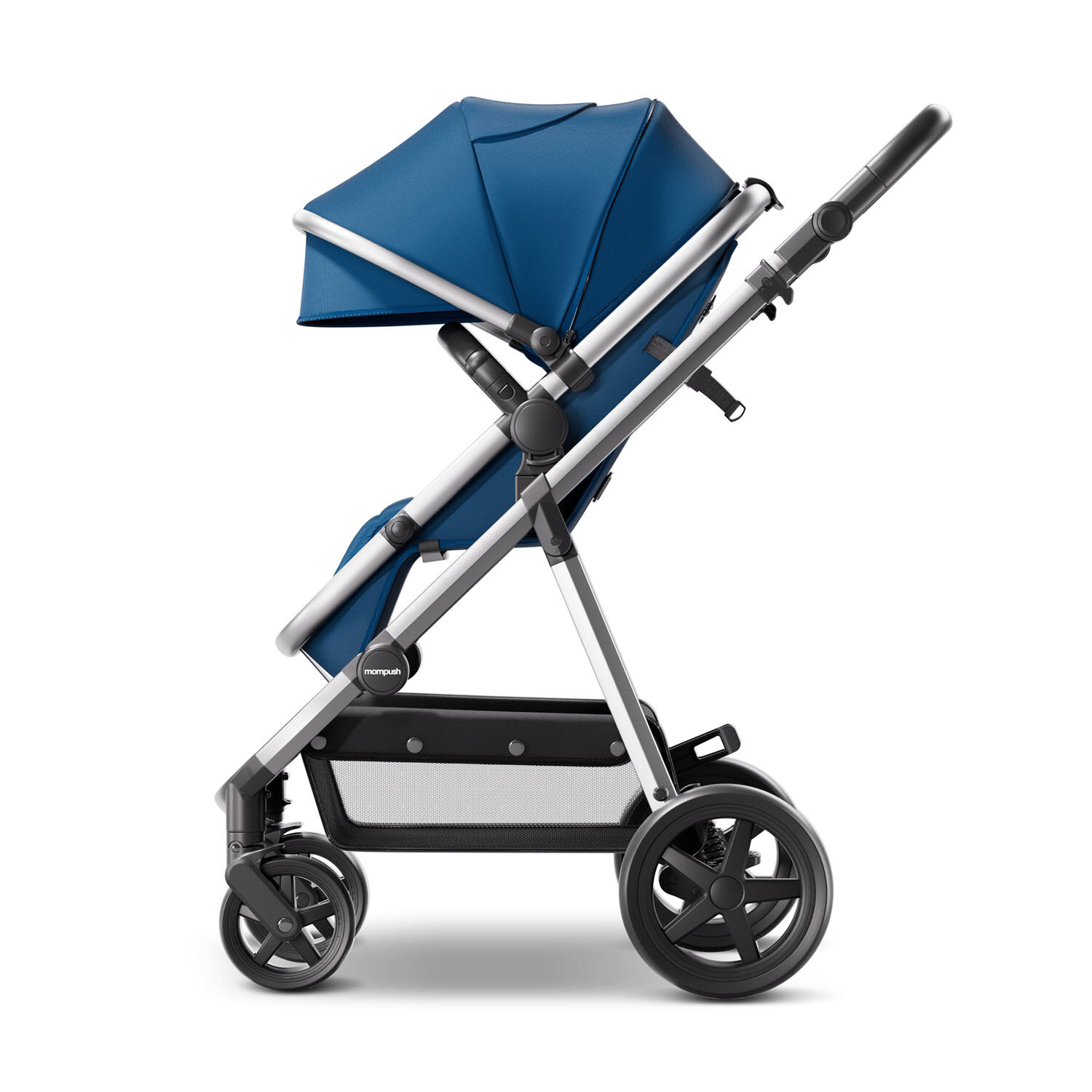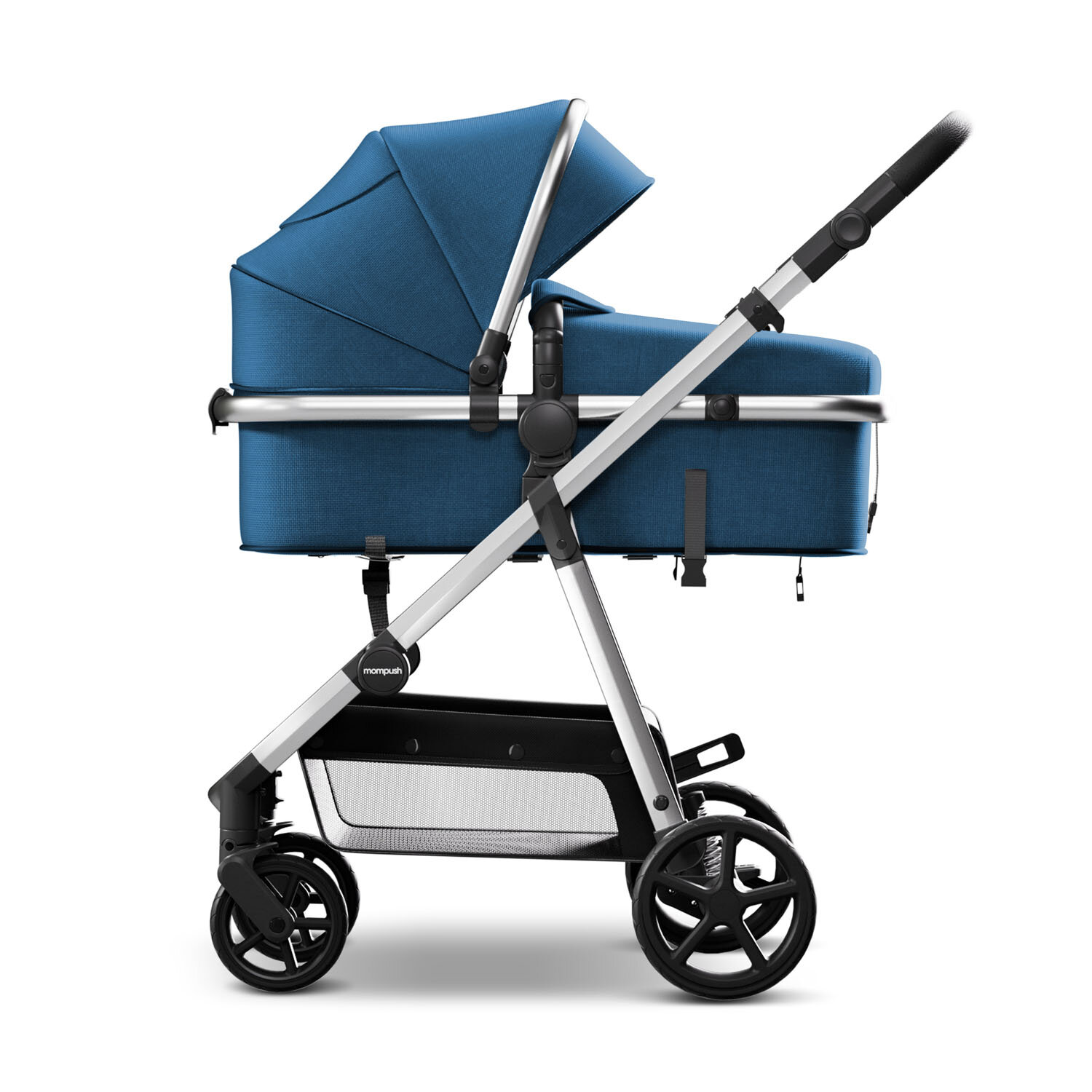 Коляска для новорожденных прогулочная 2 в 1 трансформер Mompush Meteor синий, до 22 кг, дождевик в комплекте