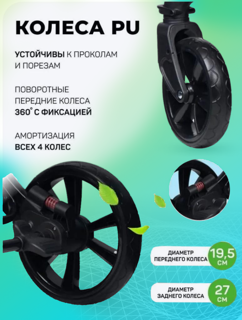 | Колеса | 4 шт., полиуретановые, 19-27 см |