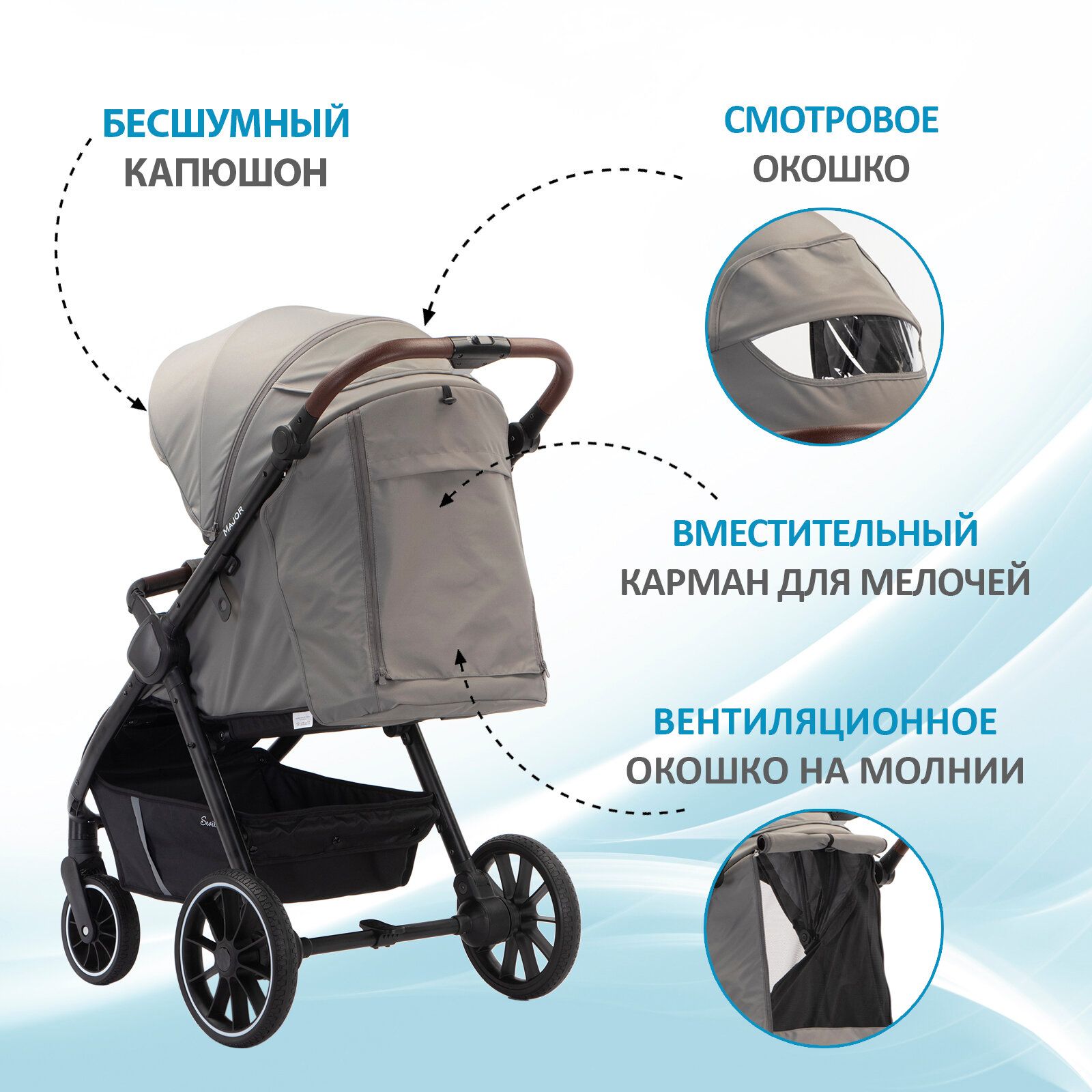 Коляска прогулочная Sevillababy Major Taupe интересное: