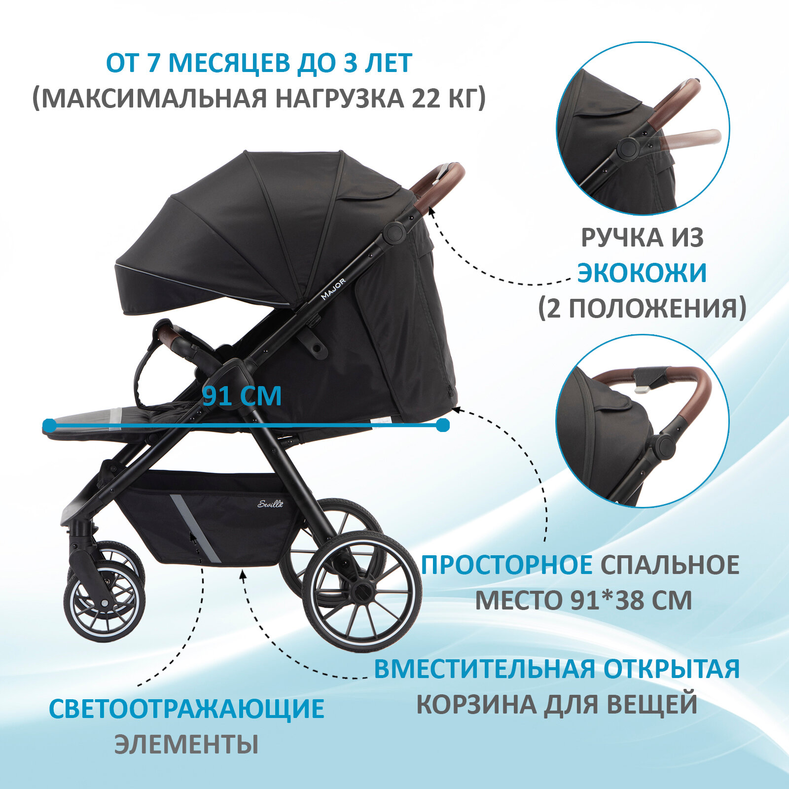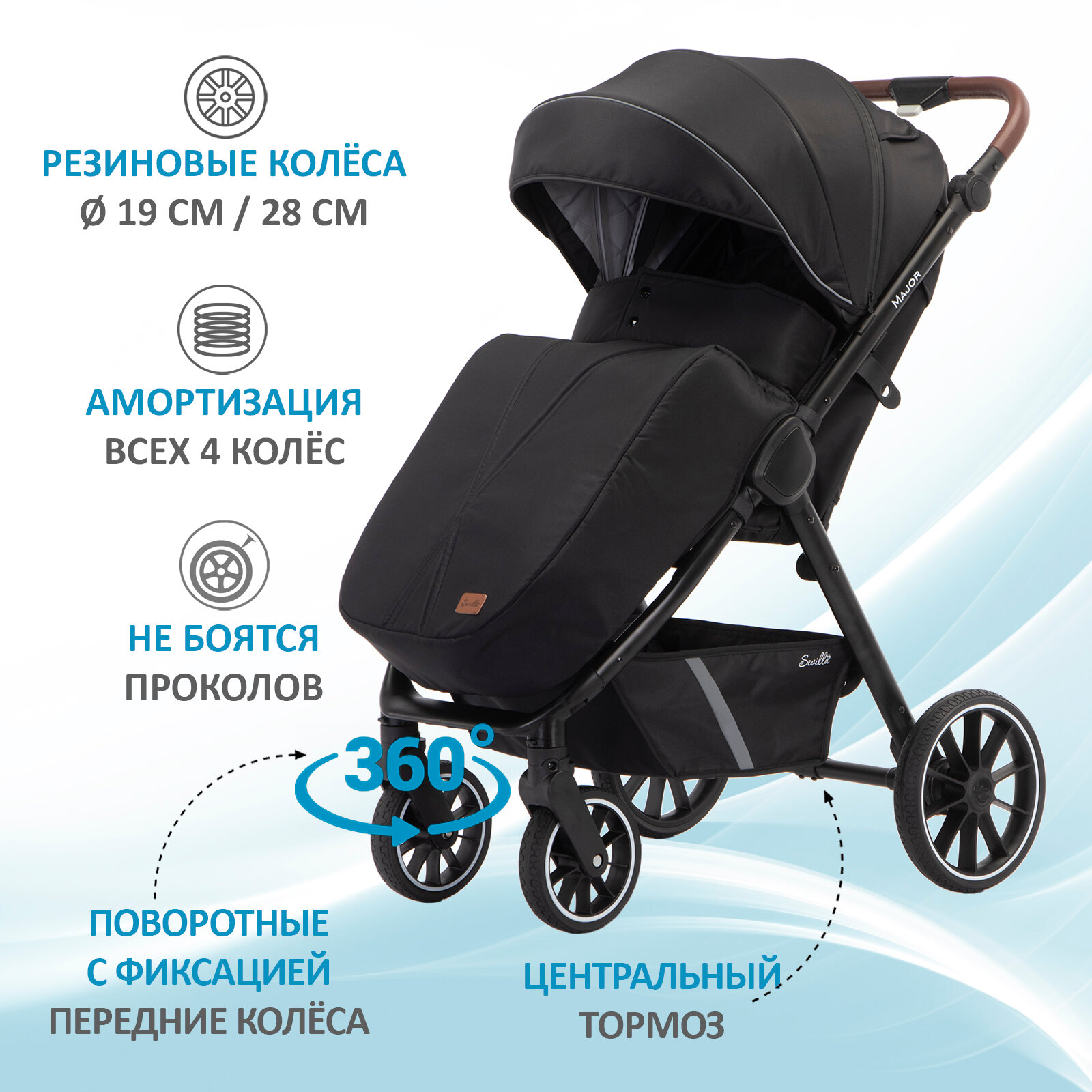 Коляска прогулочная Sevillababy Major Black интересное: