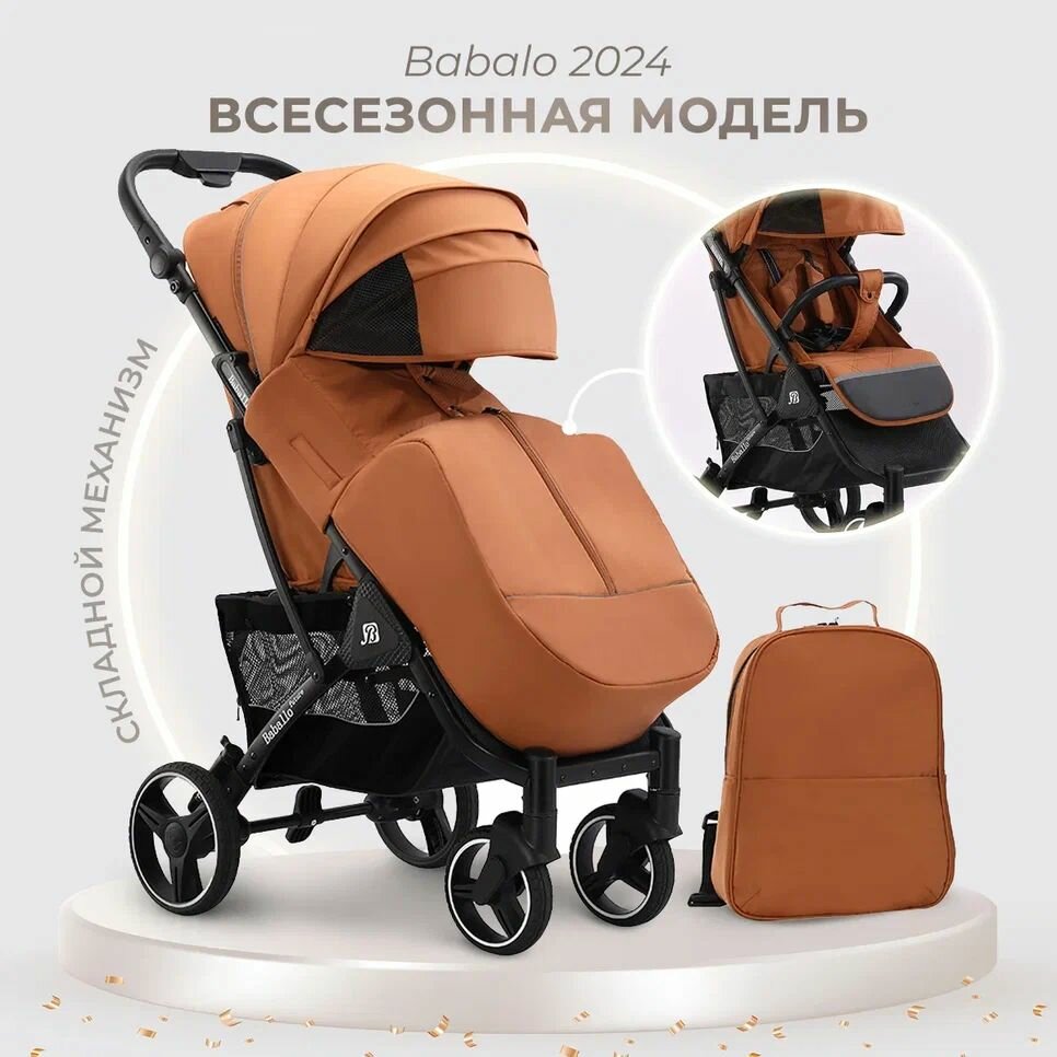 Купить Детская прогулочная коляска Babalo future 2024 NEW Амбровая, Рама черная, механическая спинка, сумка в комплекте