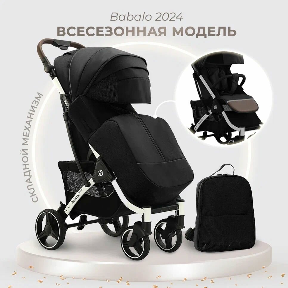 Купить Детская прогулочная коляска Babalo future 2024 NEW Черная, Рама белая, механическая спинка, сумка в комплекте