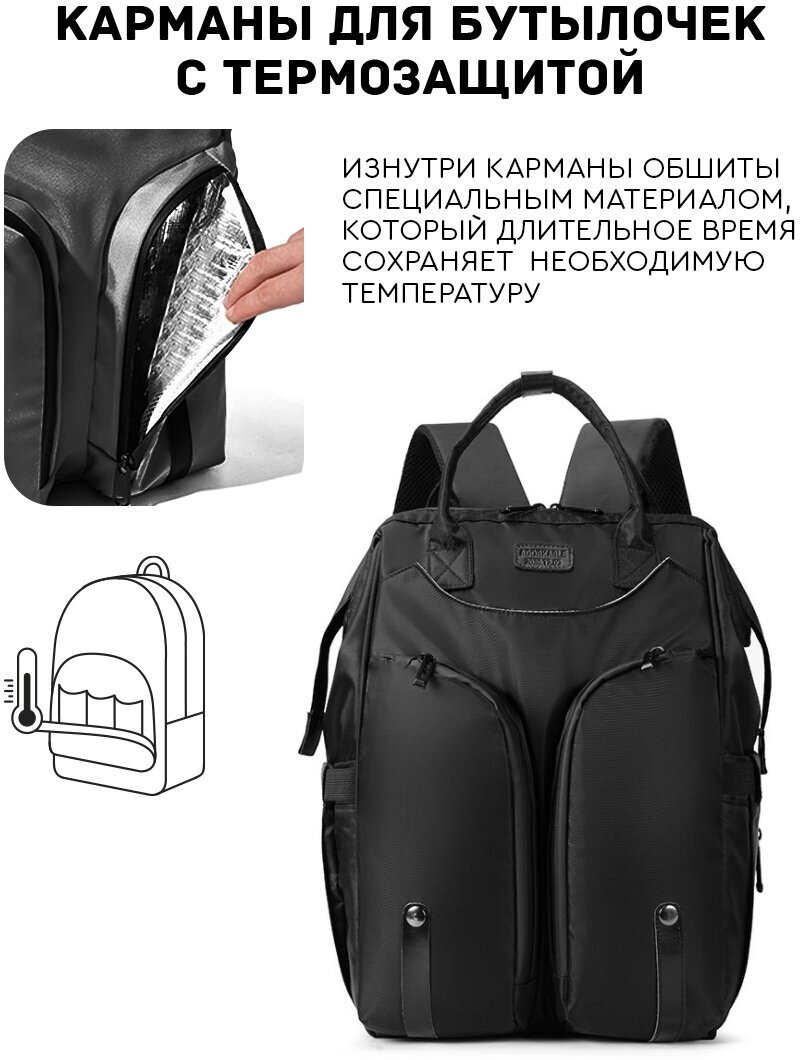 Рюкзак (черный) Dayona Dasconi с термозащитой для мам женский городской на коляску, прогулок / сумка интересное: