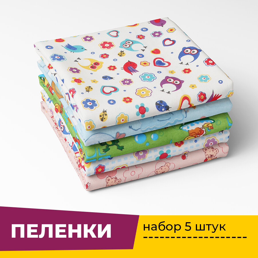 Пеленки для новорожденных детей Фланель 90х120 см (5 штук) в ассортименте интересное: