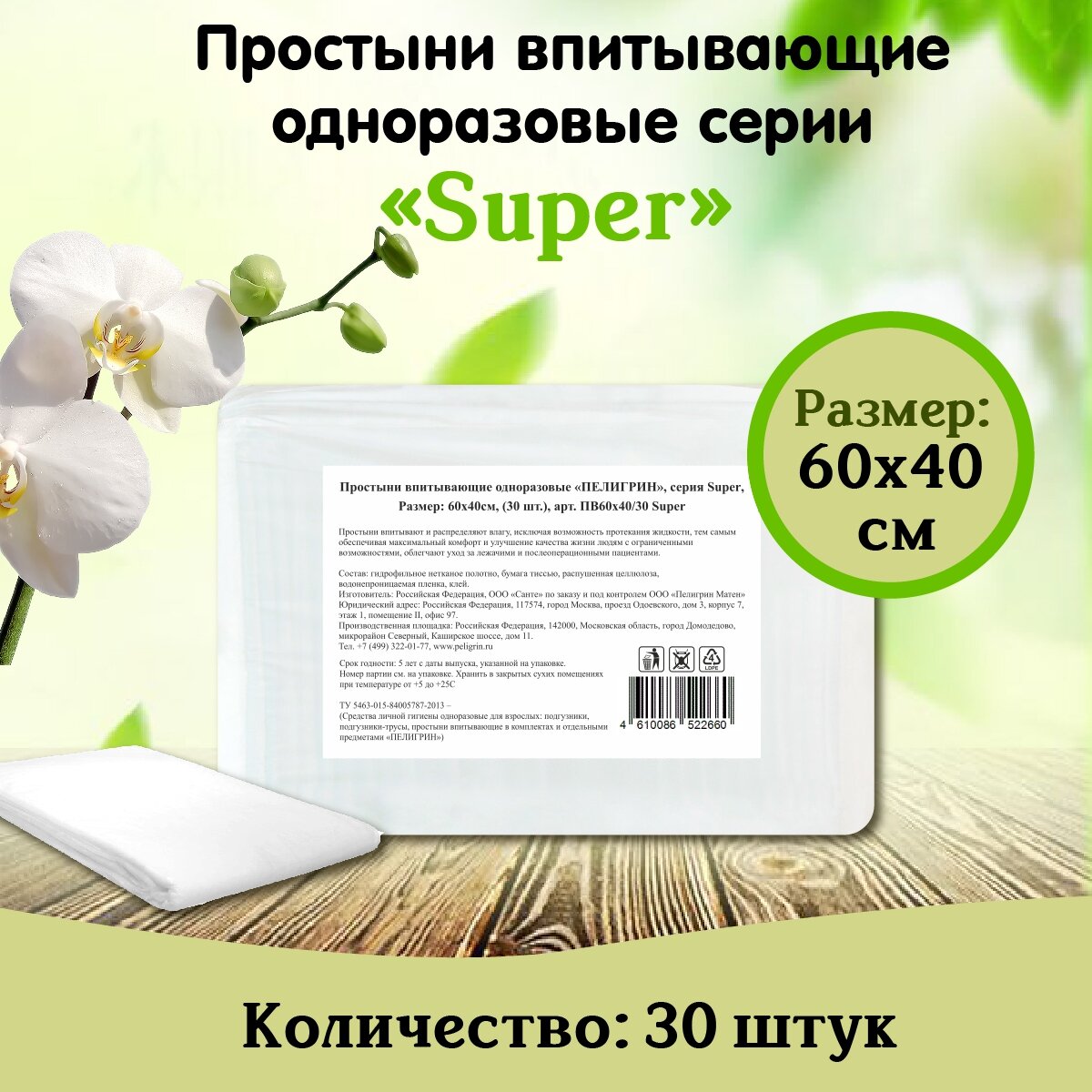 Купить Простыни одноразовые впитывающие Пелигрин 60х40 см 30шт., Super