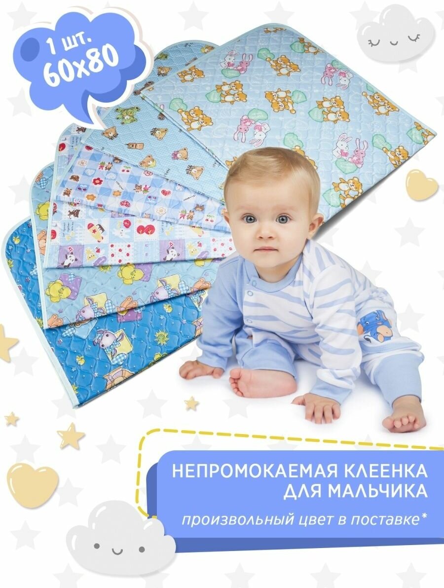 TOBBY Клеенка детская пеленка непромокаемая многоразовая для мальчиков синяя 60х80см интересное: