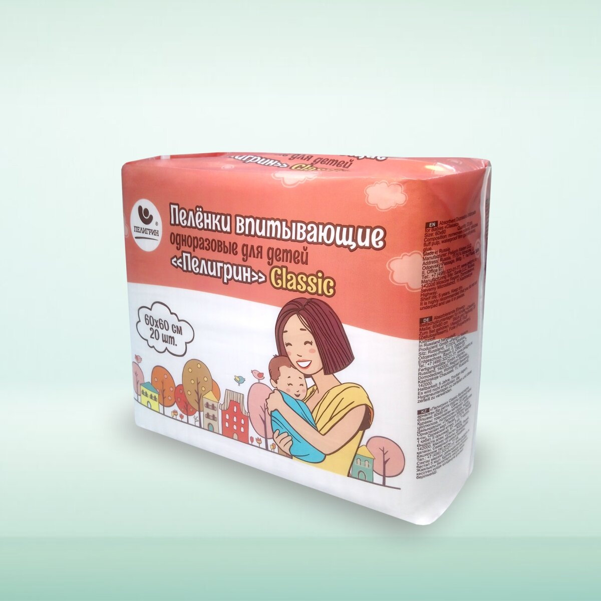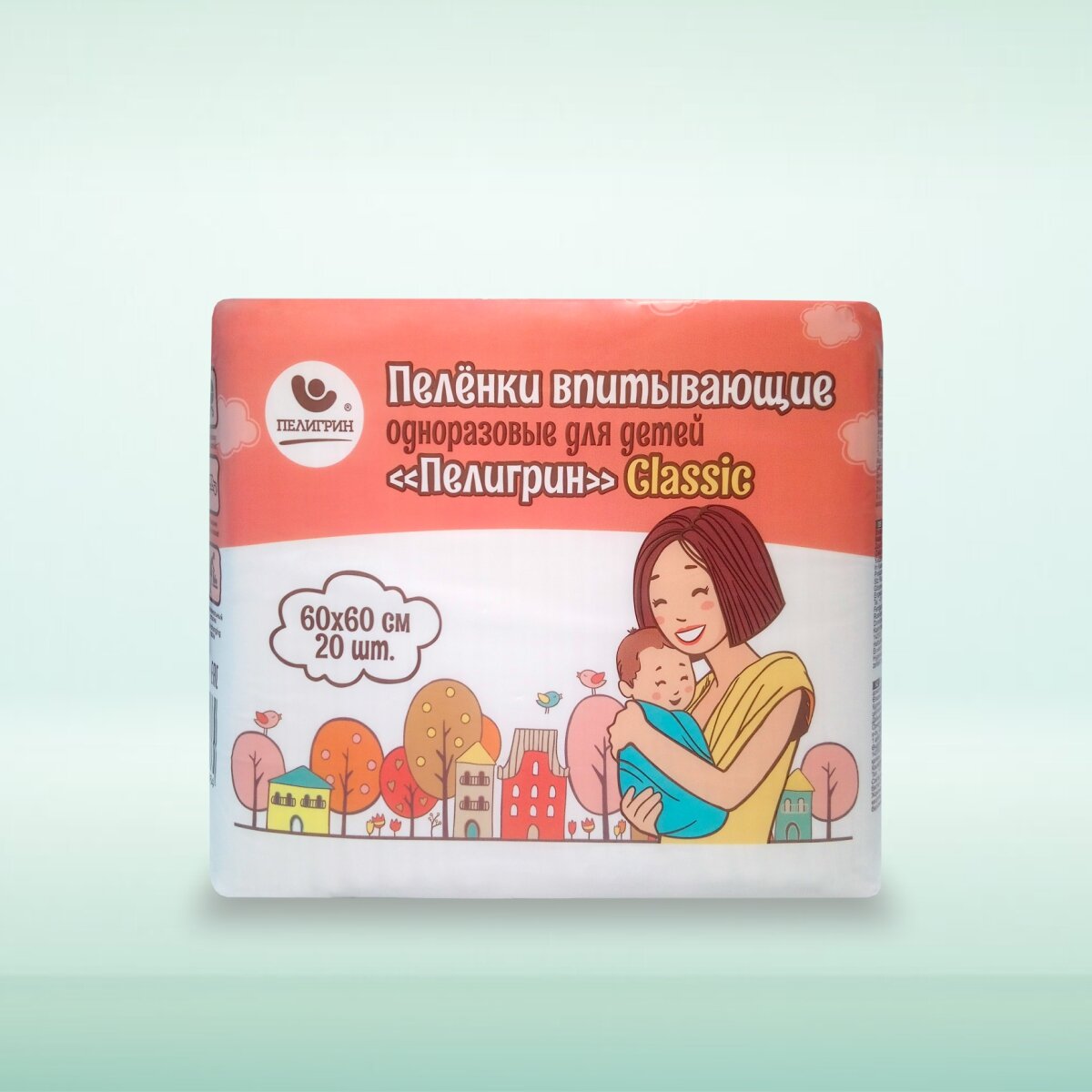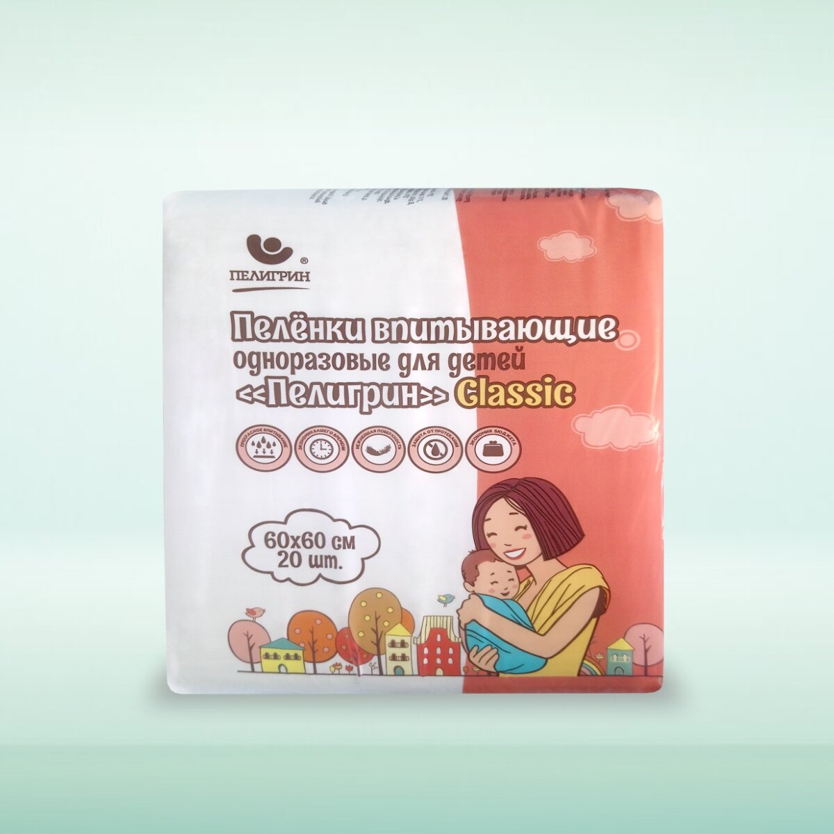 Пеленки одноразовые впитывающие Пелигрин 60х60 см, 20 шт. Classic интересное: