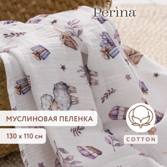 Пеленка муслиновая Perina Овечки 110х130 см интересное: