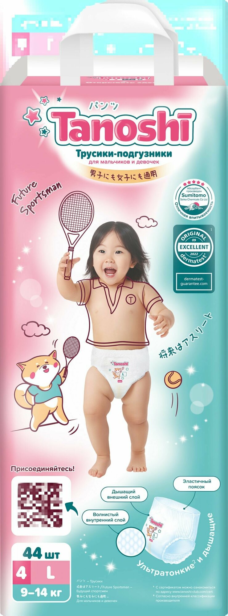 Купить Tanoshi Трусики-подгузники для детей, размер L 9-14 кг, 44 шт.