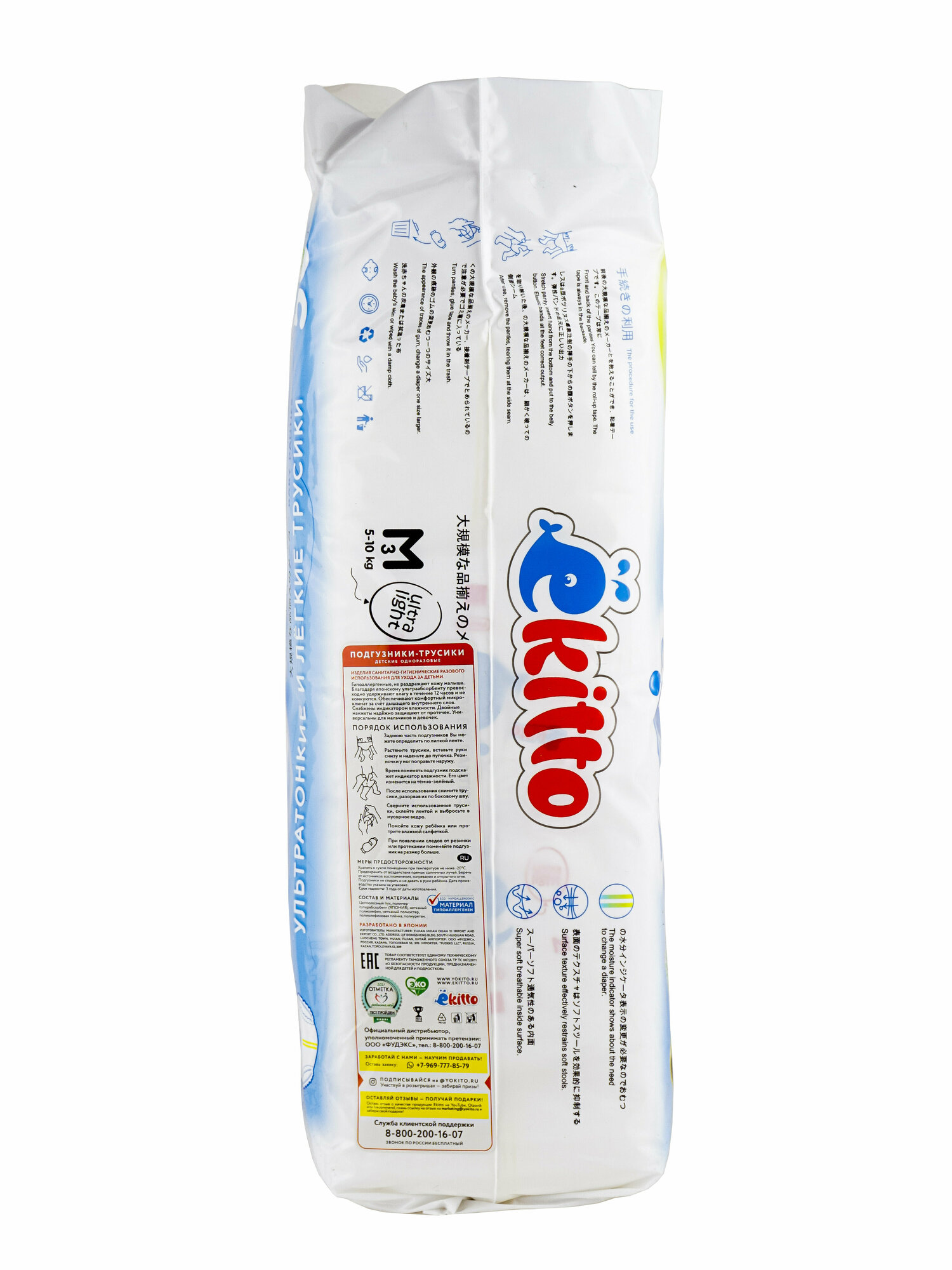 Подгузники трусики детские Ekitto Ultra Light 3 размер M для детей от 5-10 кг, ультратонкие ночные памперсы трусы для мальчиков и девочек, японские премиум, 150 шт