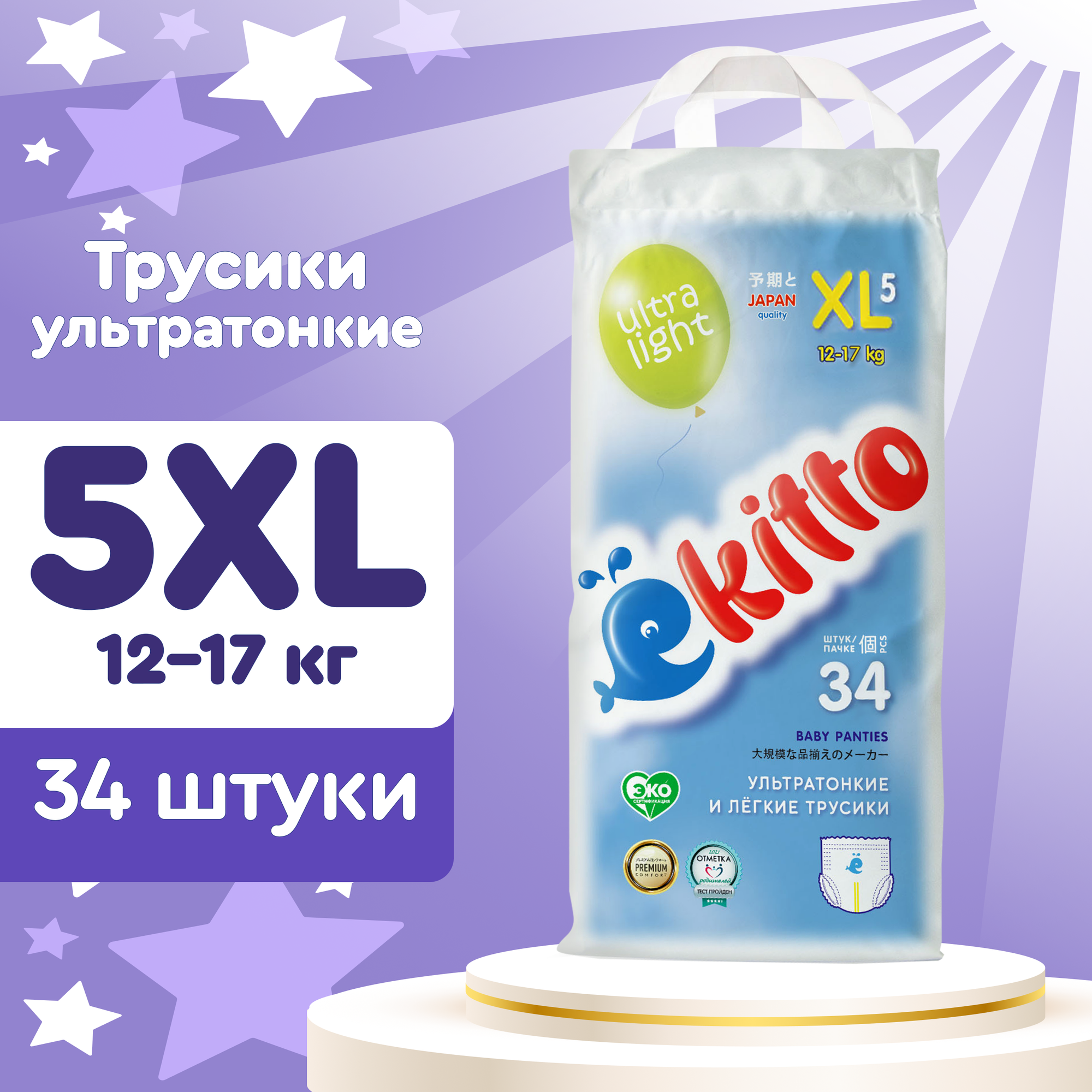 Ekitto трусики Ultra Light 5XL (12-17 кг), 34 шт