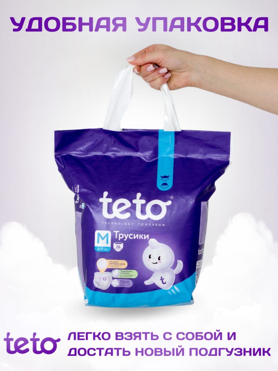 Teto Подгузники трусики для детей Памперсы для мальчиков и девочек размер 3 M (6-11 кг) 26 шт в упаковке интересное: