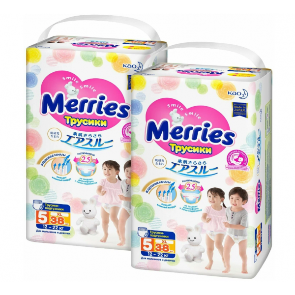 Подгузники-трусики MERRIES размер XL (12-22 кг) 76 шт (2 упаковки по 38 шт) интересное: