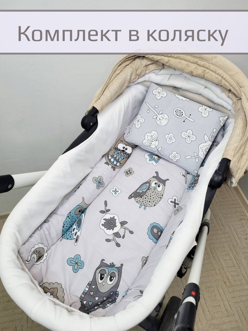 Комплект в коляску "Совы на сером"