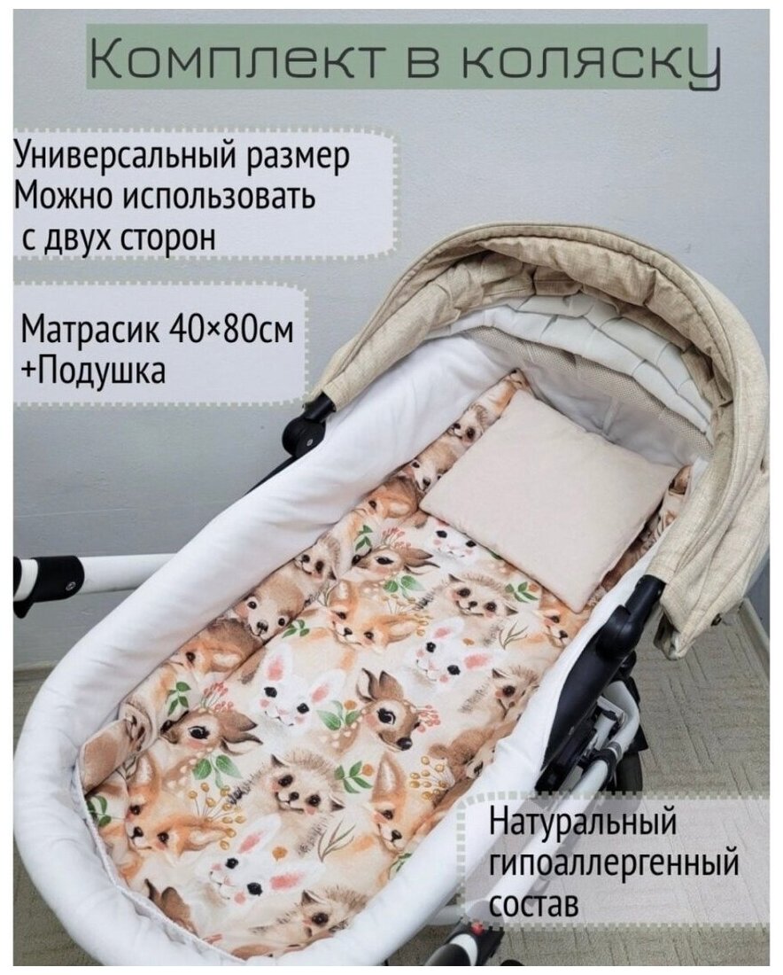 Комплект в коляску "Матрас зайцы,белки.лисы"