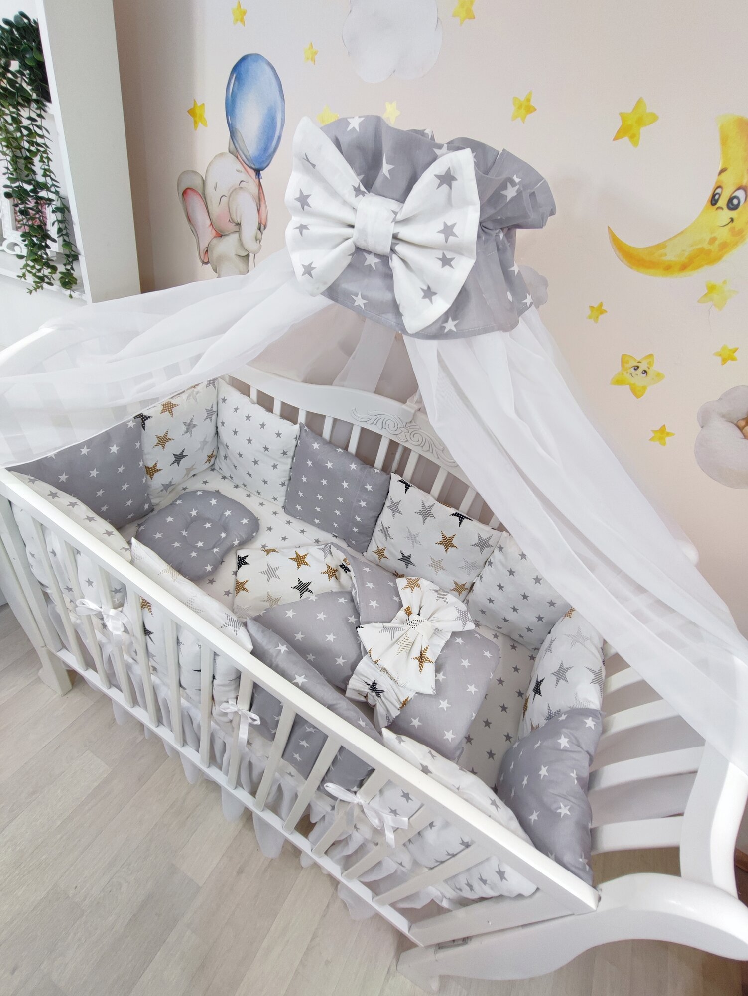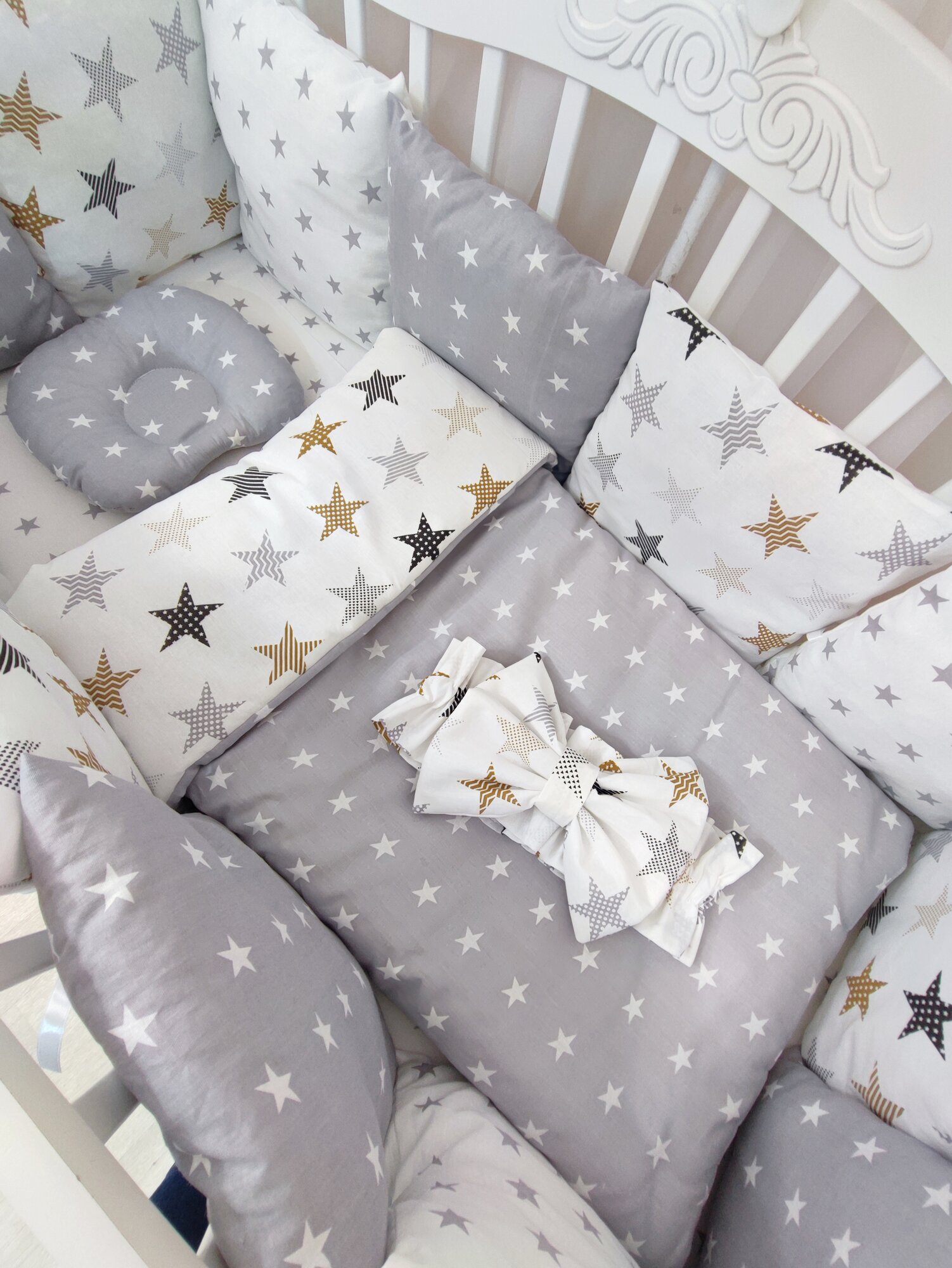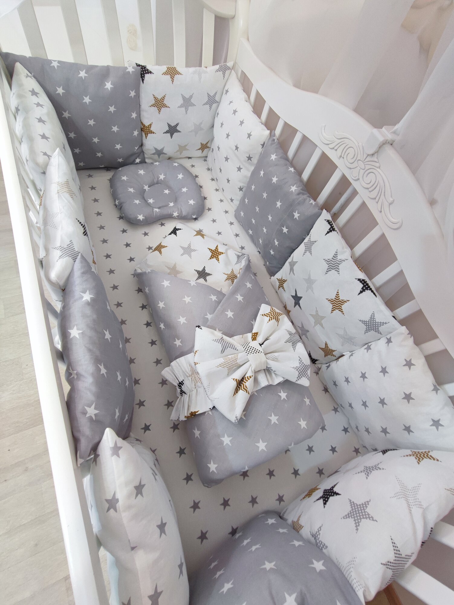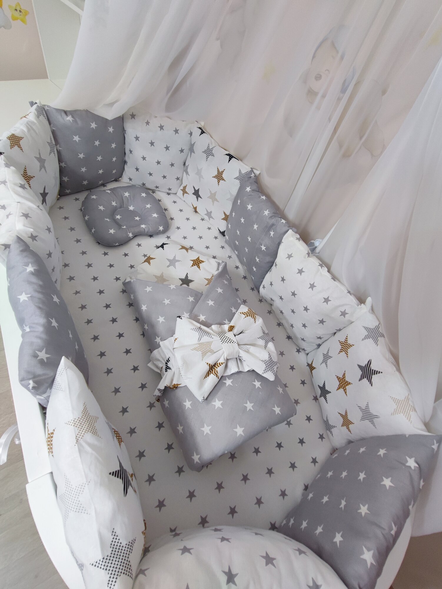 Купить Комплект бортиков в кроватку из 16 предметов Mamdis для новорожденных и малышей со звездами