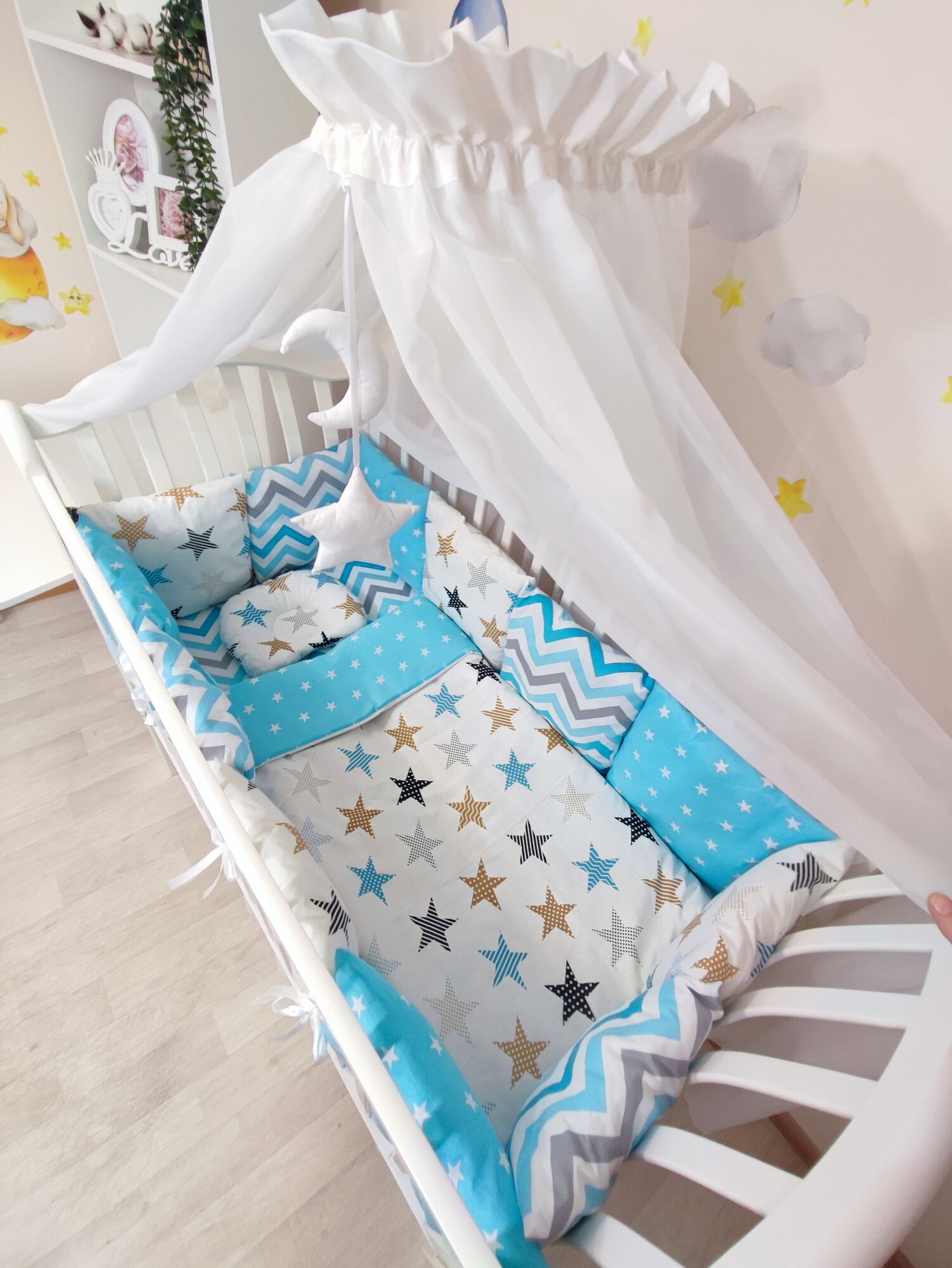 Комплект бортиков в кроватку из 16 предметов Mamdis для новорожденных и малышей со звездами