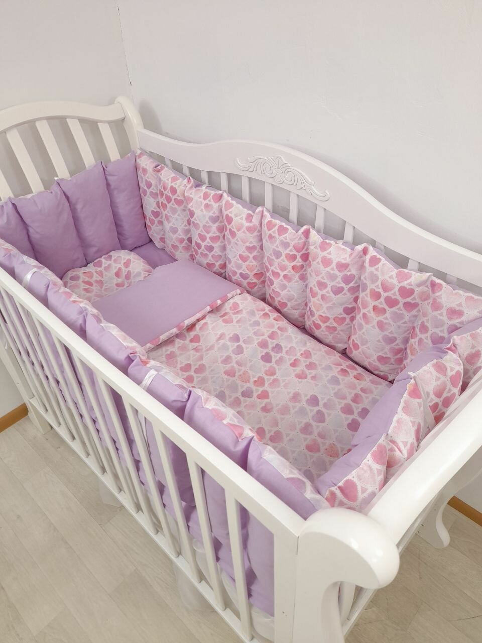Купить Комплект бортиков в кроватку из 7 предметов для новорожденных и малышей Mamdis сиреневый