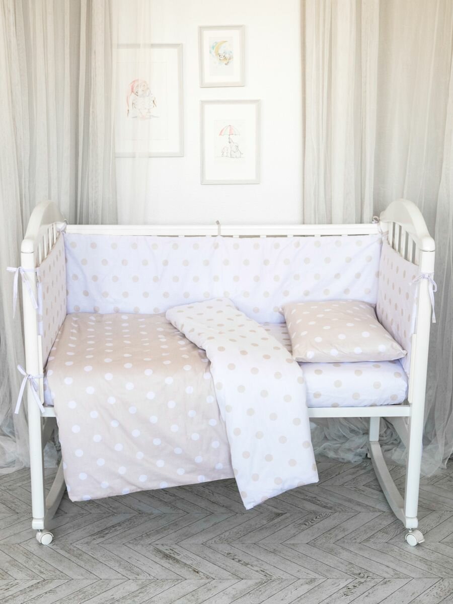 Купить Бортики в кроватку для новорожденного Комплект 4шт. горох, бежевый
